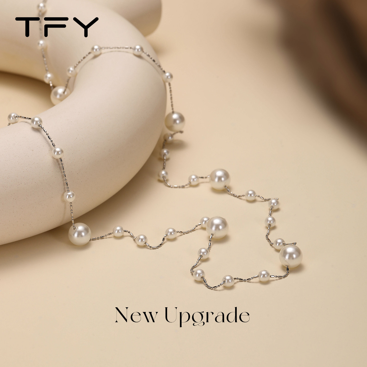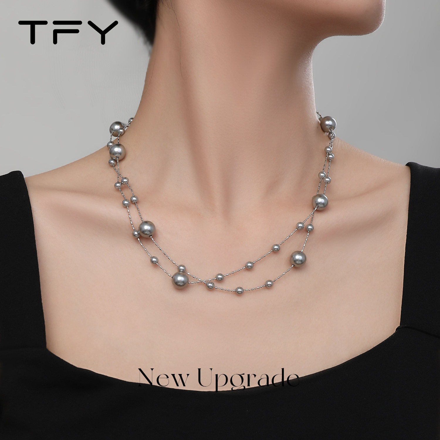 灰色满天星珍珠项链女长款锁骨链气质简约复古款百搭设计