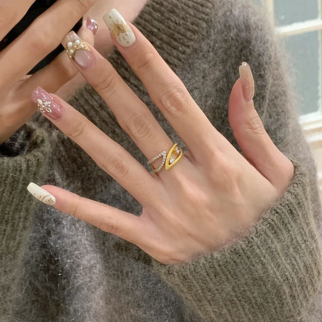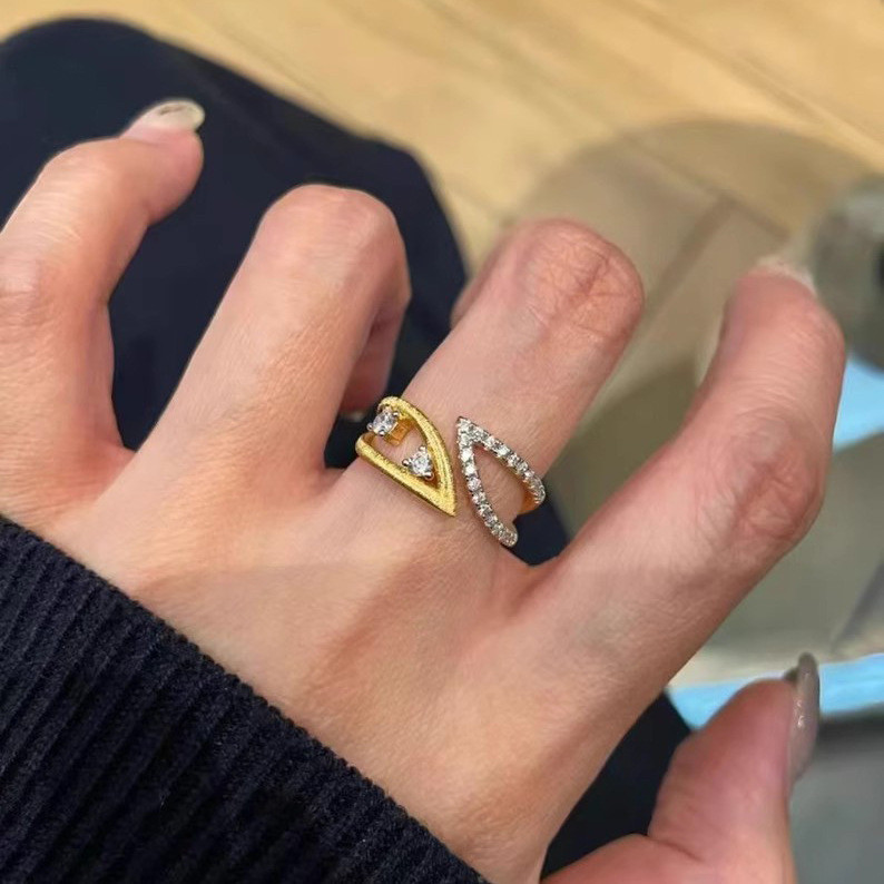 vintage落叶缱绻镂空金色叶片戒指中古轻奢撞色高级感镶钻指环女