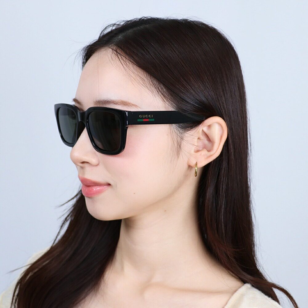 日本直邮Gucci太阳镜亚洲版型防紫外线方形GG1857SK 001黑色黑色