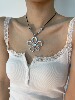 复古波西米亚个性金属花朵欧美风ins项链黑色皮绳甜酷民族风颈链