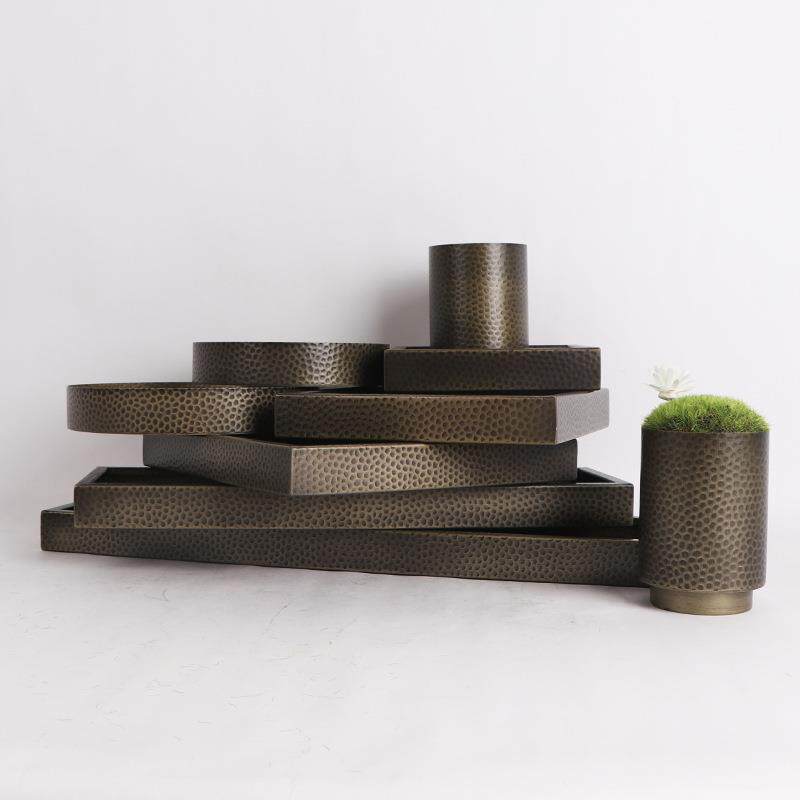 不锈钢锤纹景仿古铜花器长方圆形花盆苔MC-TY-CW藓造装置酒店大堂