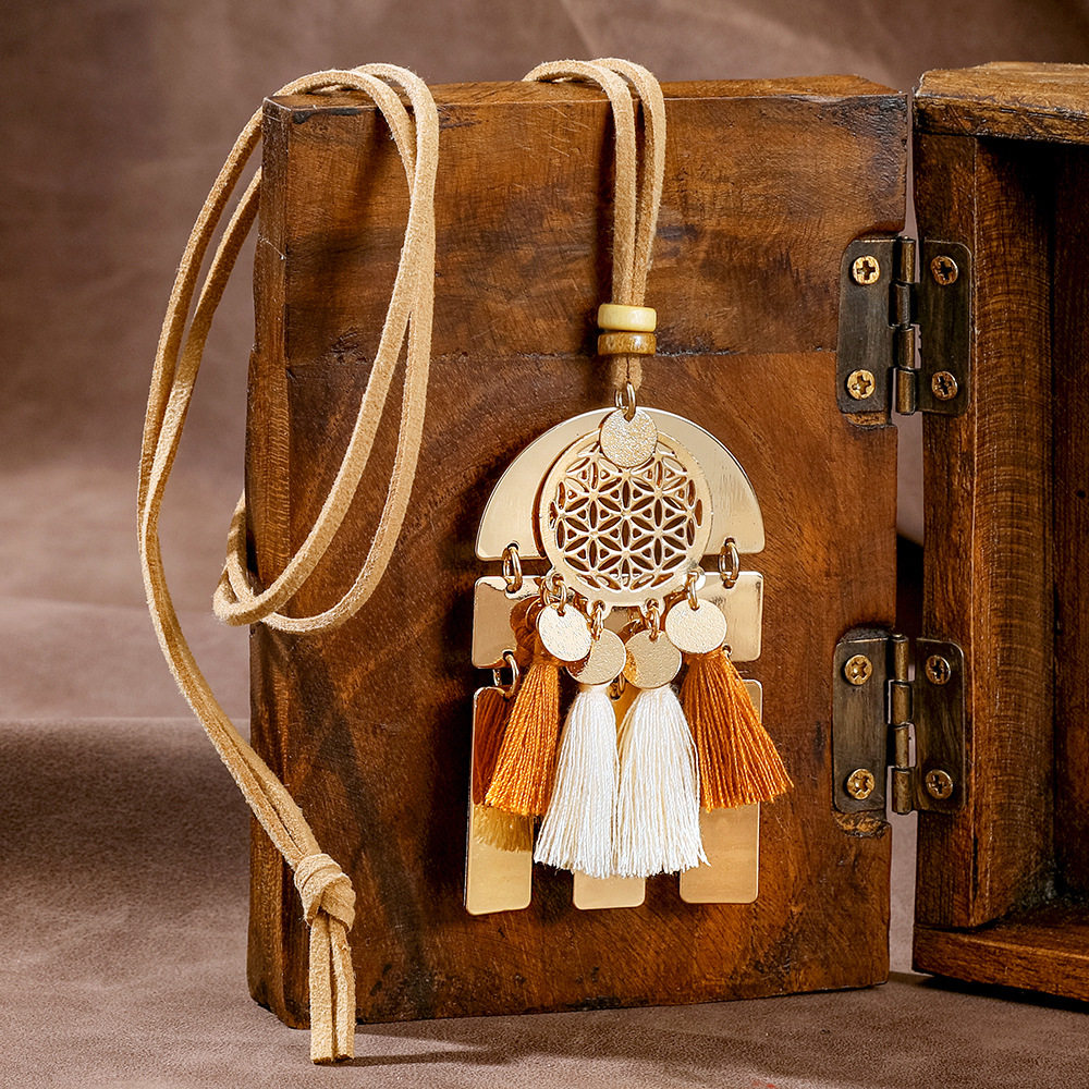 跨境爆款超美创意民族度假风简约时尚项链拉菲草手工编织流苏项坠