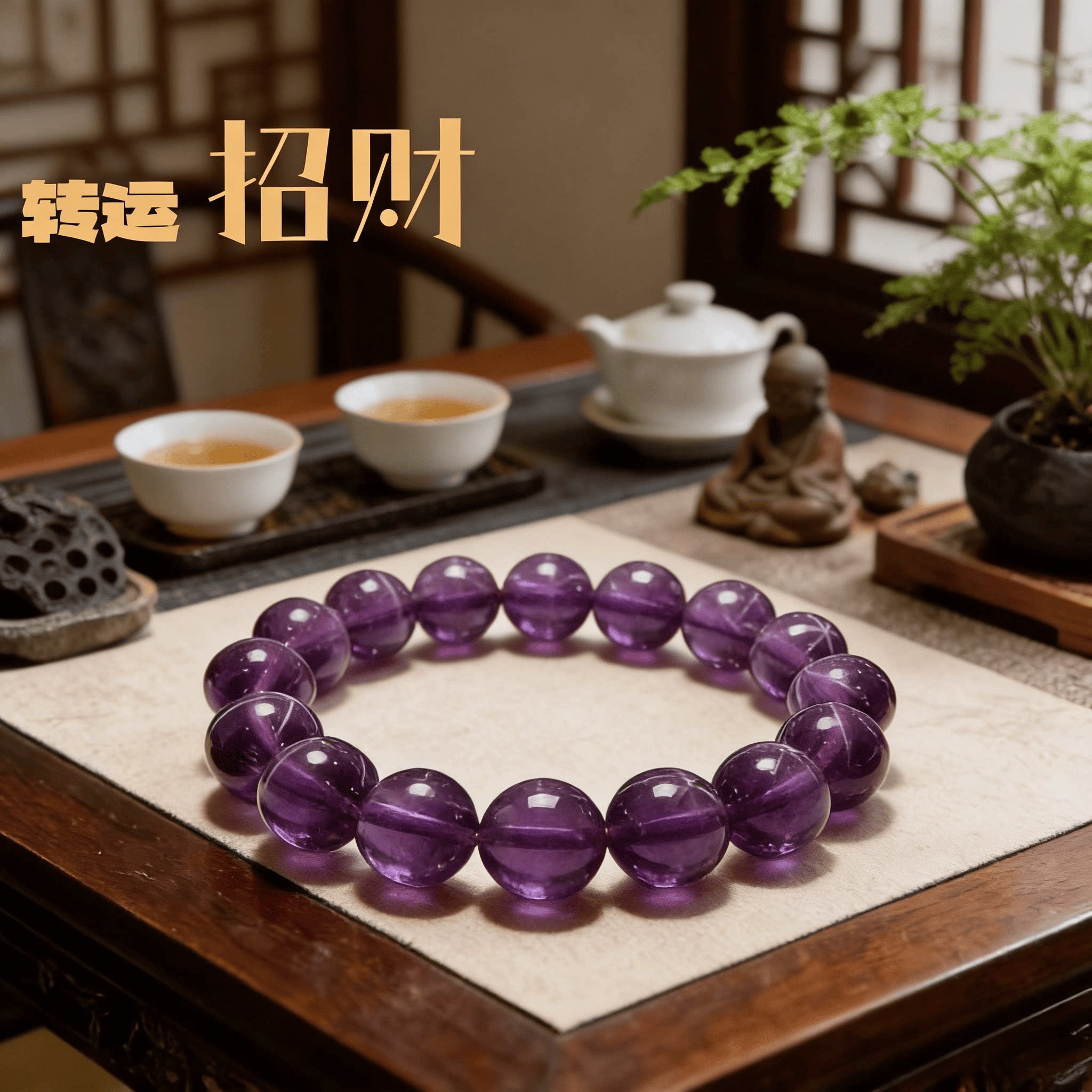 紫色九紫离火水晶手串AA天然紫水晶手链巴西原矿冰种圆珠手串