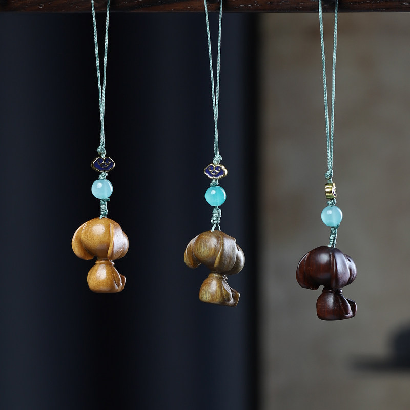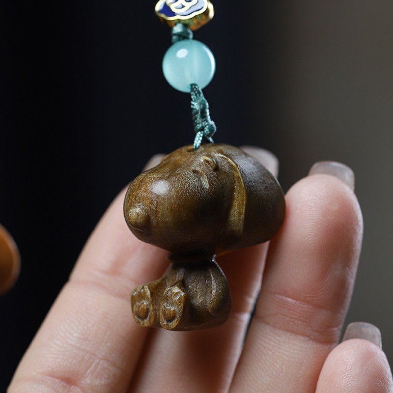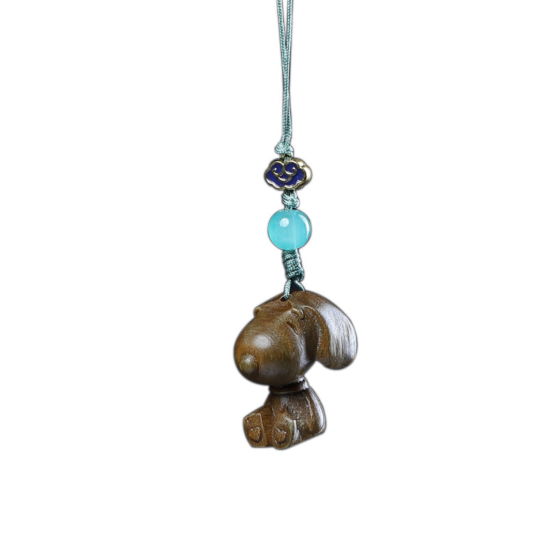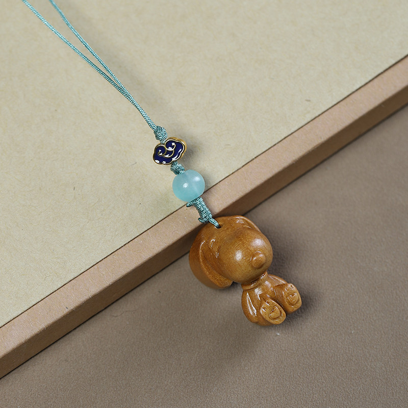 檀香紫檀绿檀木雕刻卡通史努比手机链情侣背包钥匙扣装饰车挂件