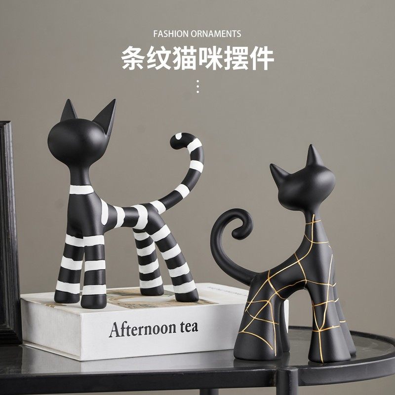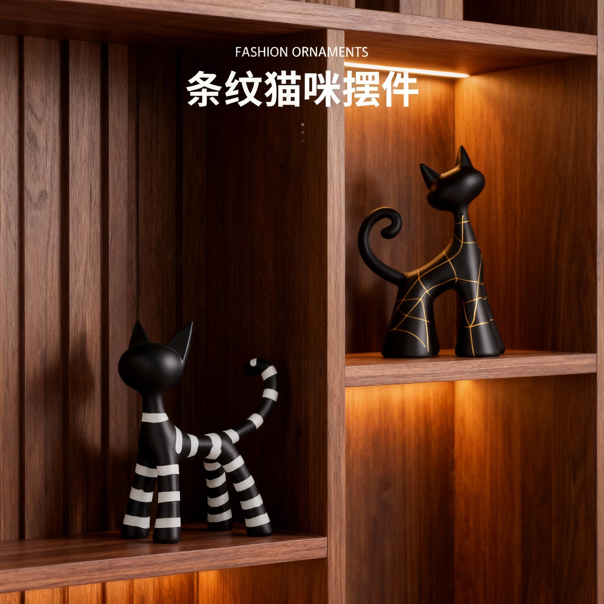 简约现代风条纹猫咪摆件玄关客厅酒柜装饰摆件新房装修家居饰品