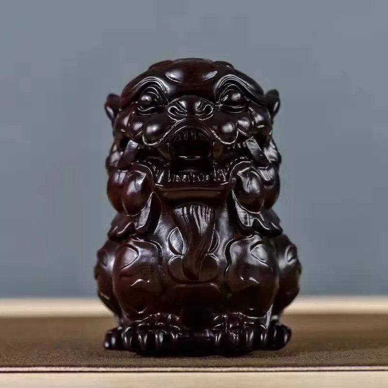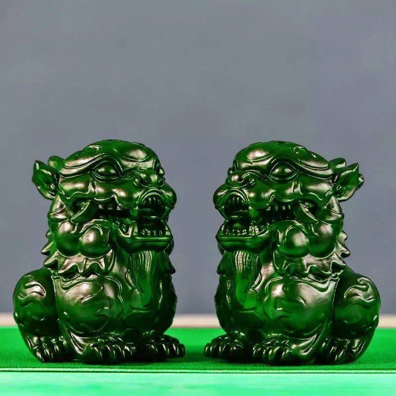 绿色实木麒麟雕刻摆件家居客厅办公室玄关装饰工艺品开业工艺送礼