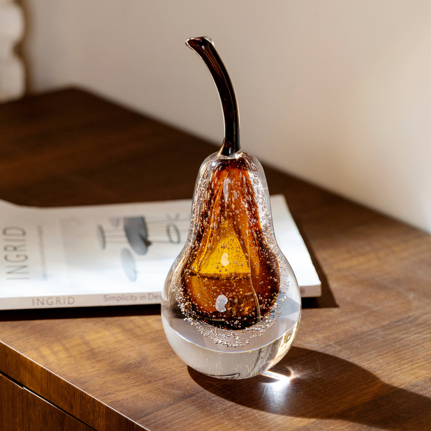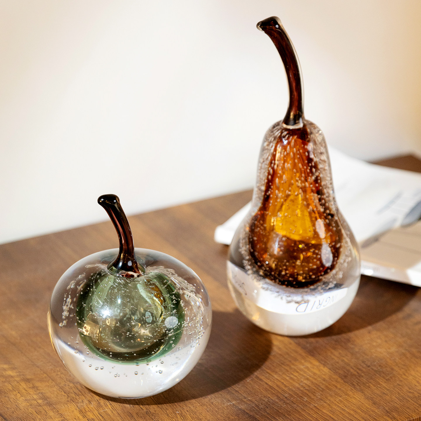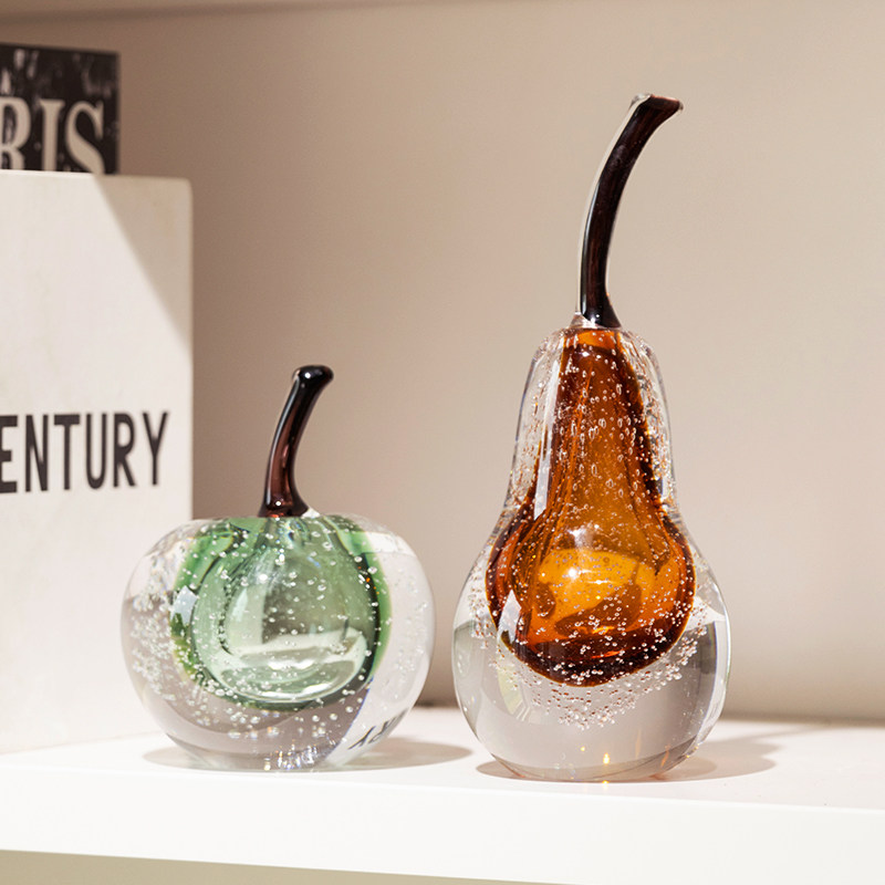 高级感苹果梨桌面琉璃摆件客厅玄关壁龛格子电视柜吧台装饰工艺品