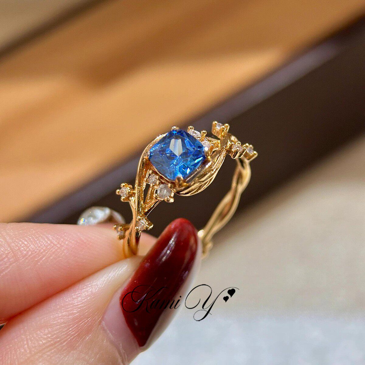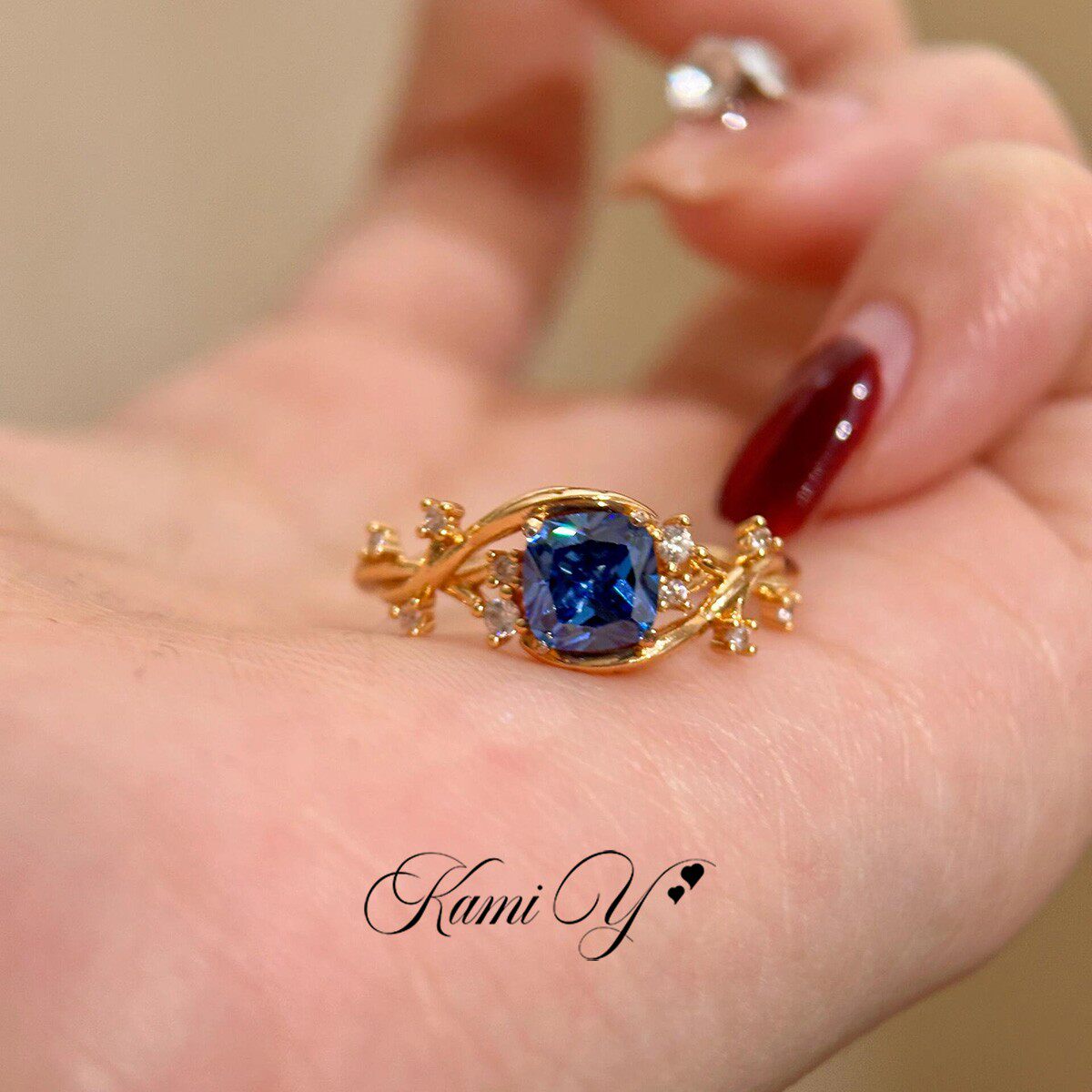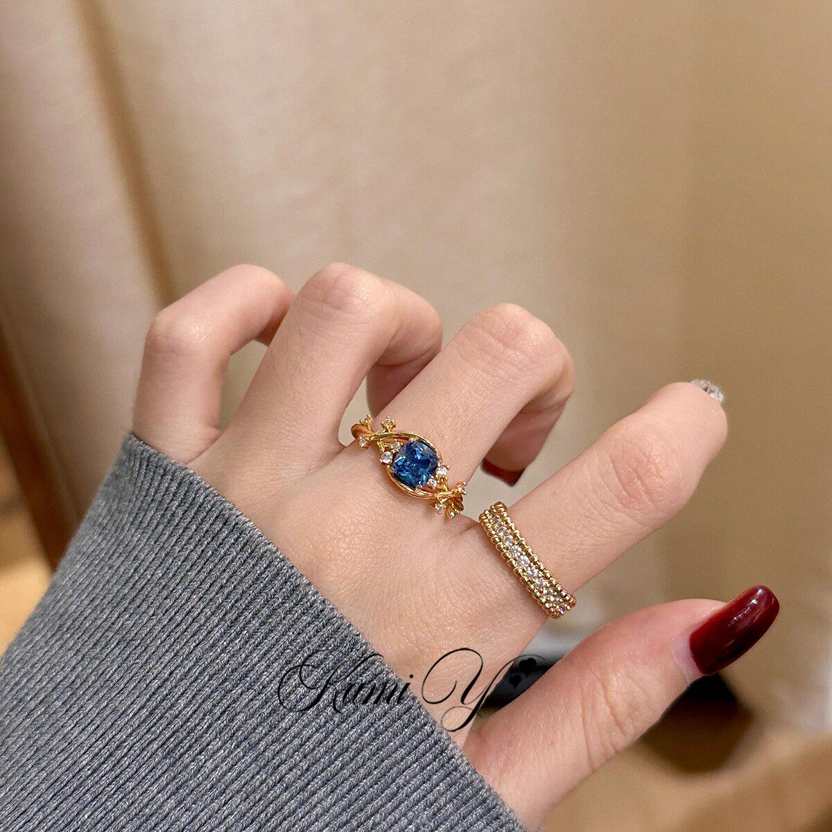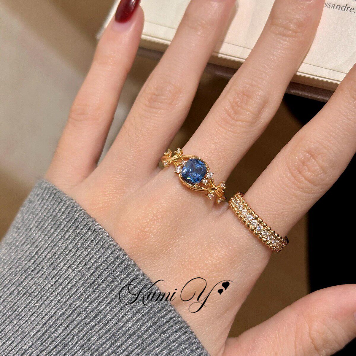 轻奢藤蔓缠绕蓝色锆石戒指女精致百搭复古高级个性设计感气质指环
