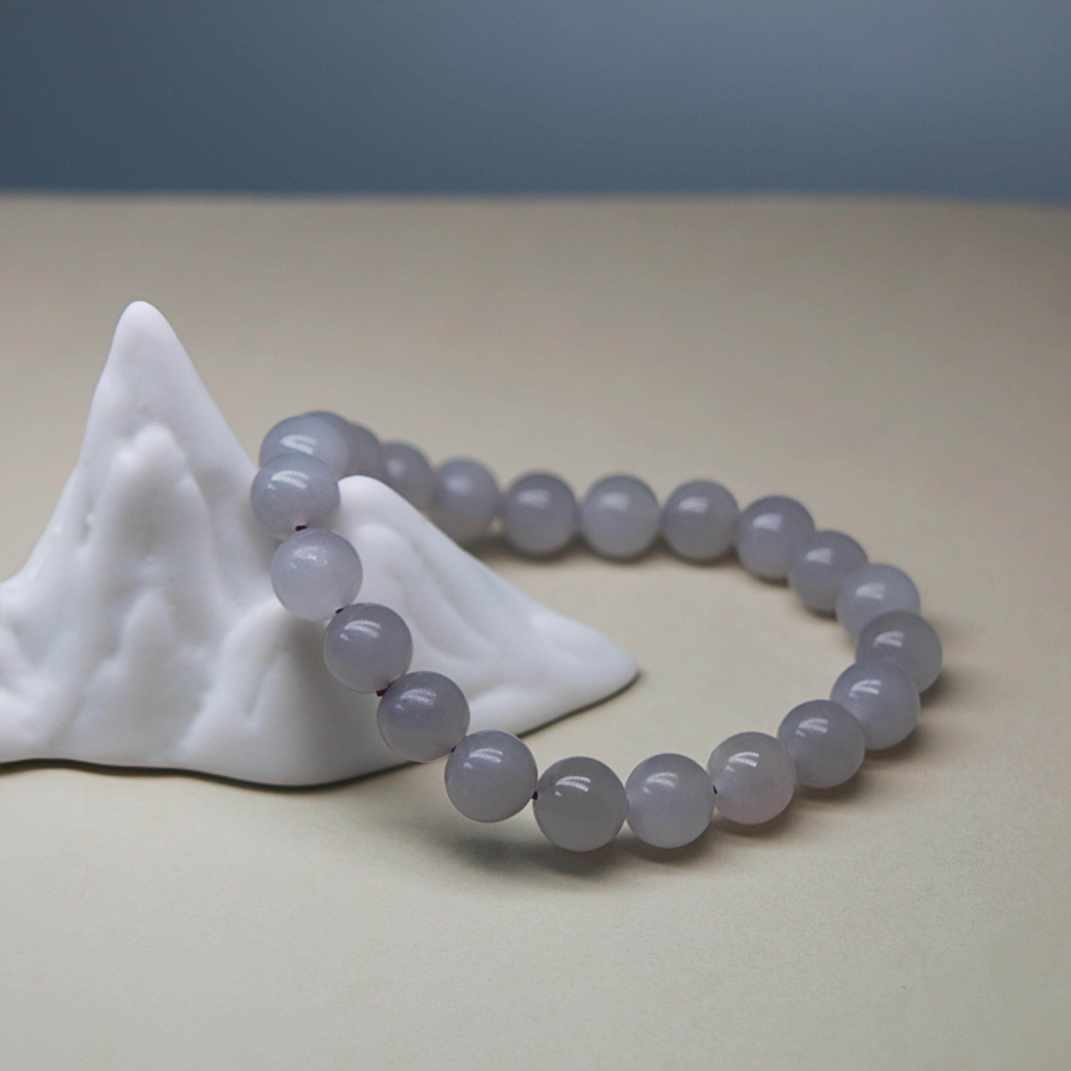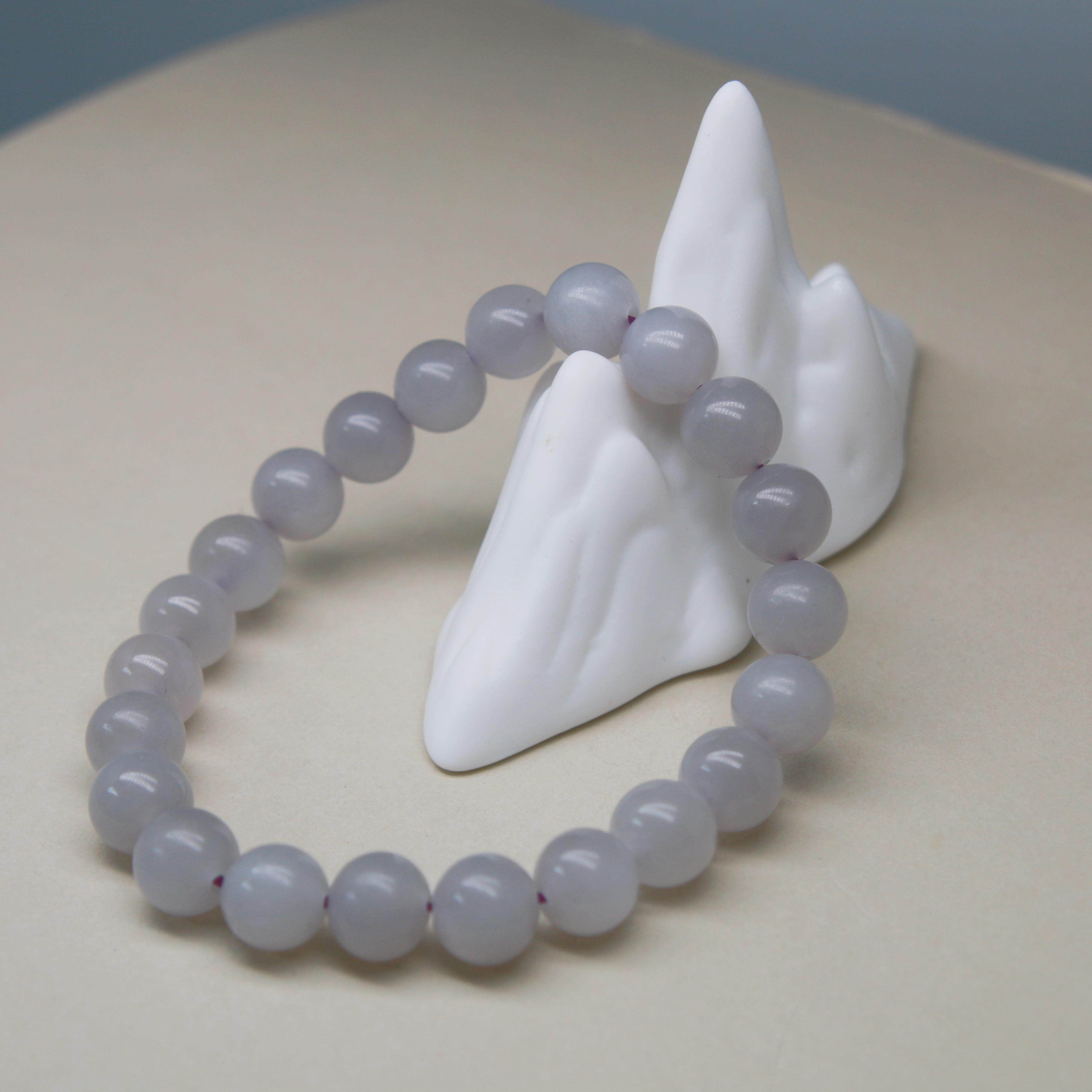 TIAN004和田玉 烟紫色 手串手链玉串 圆珠 莫兰迪色 玉石 证书