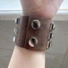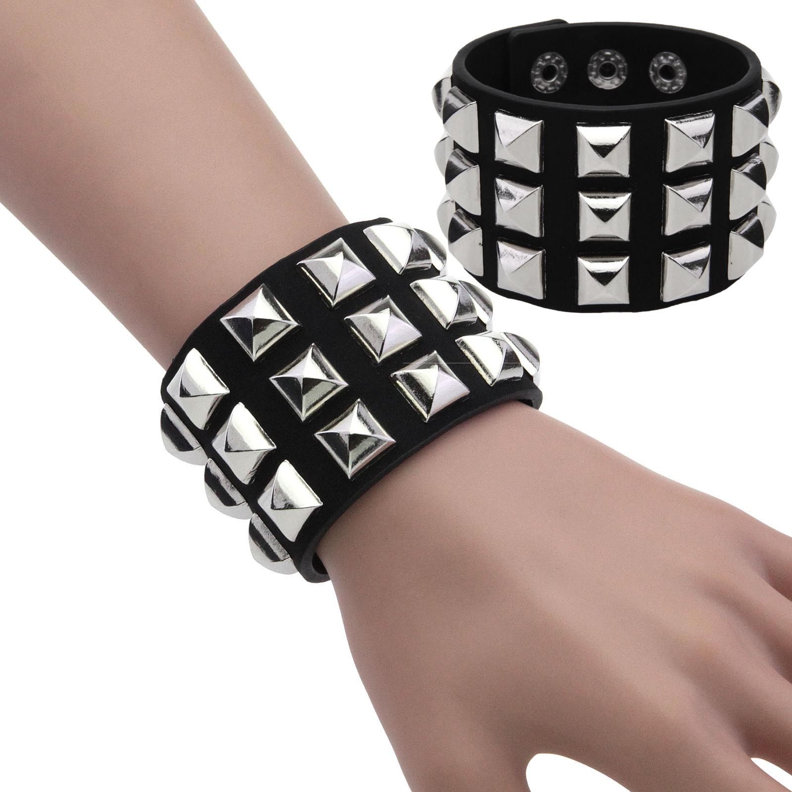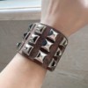 欧美新款配饰三排方钉手镯朋克高档皮革宽手链个性复古机车手