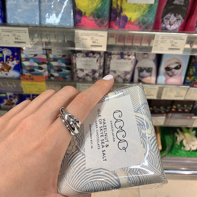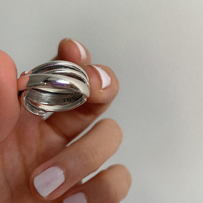 韩版泰银复古戒指女s925银ins欧美多层交叉个性简约开口食指环潮