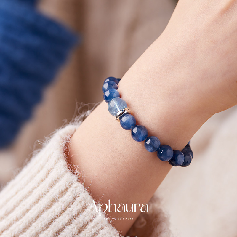 水晶手链天然蓝色高品质蓝水晶星空油画蓝晶石海蓝宝手串生日礼物