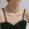 欧美复古黑色皮编织链条项链女新款气质女个性锁骨链百搭流苏颈链
