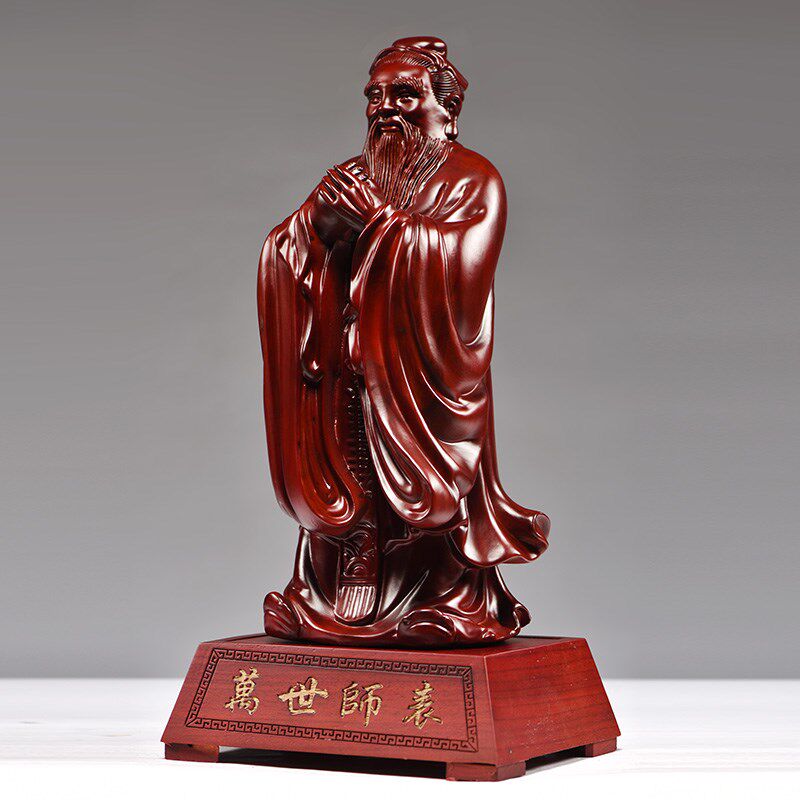 红色木雕孔子雕像实木孔夫子摆件家居学校办公装饰红木工艺品送礼