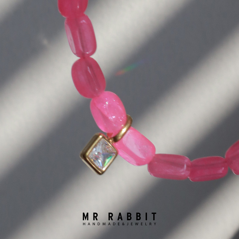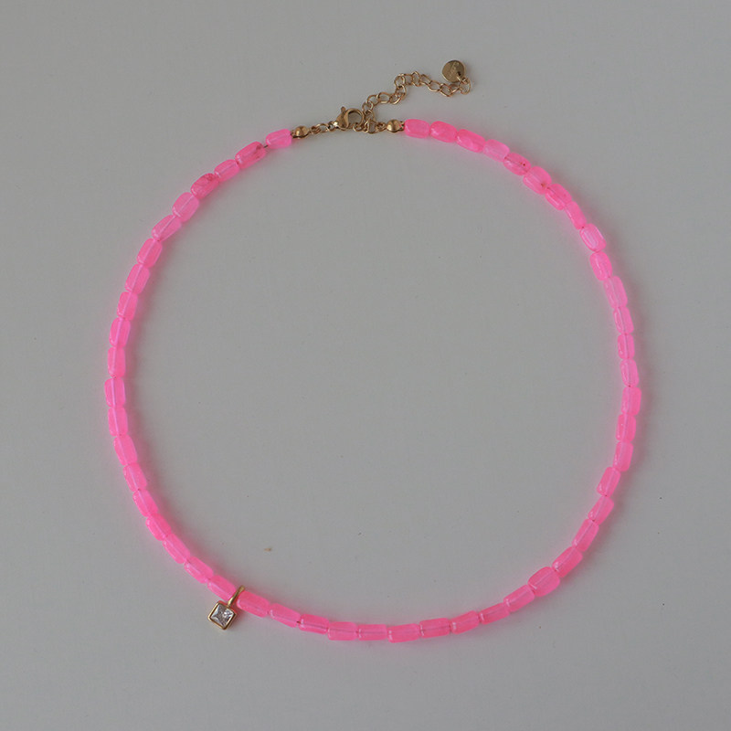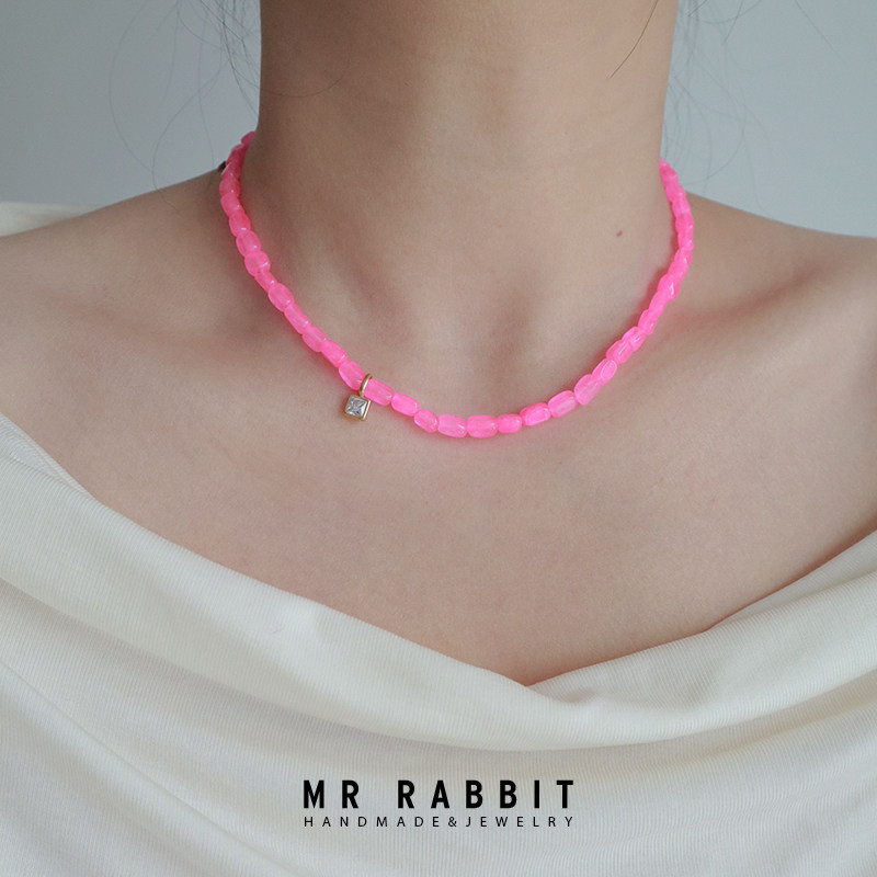 手工制作荧光粉色天然玉石时尚百搭项链甜酷潮欧美ins风男女饰品