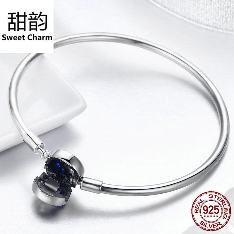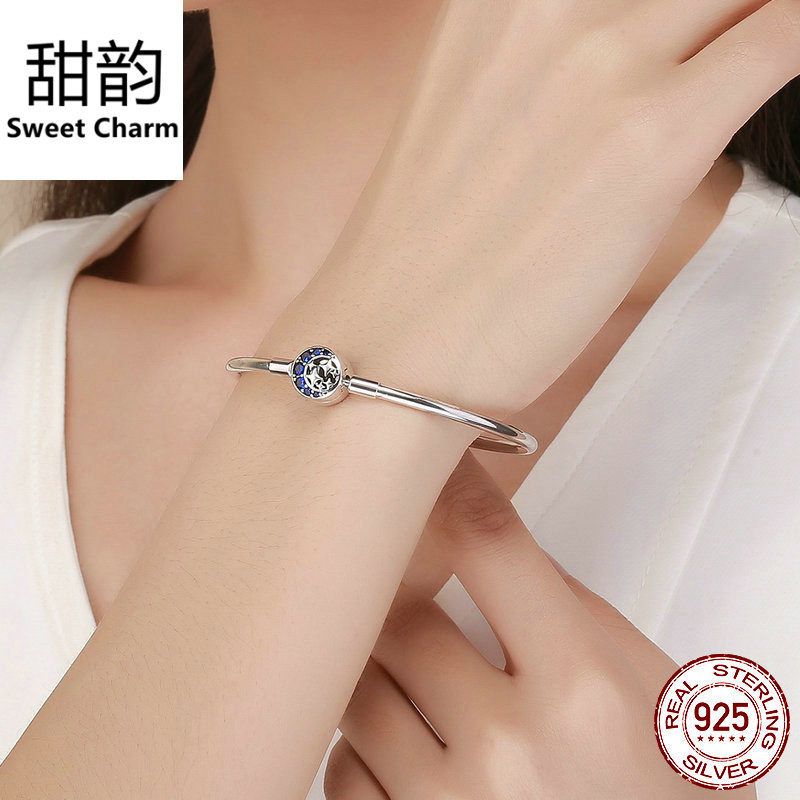 欧美热卖星空S925纯银手镯手环 镶嵌蓝色宝石手串配饰搭配小串饰