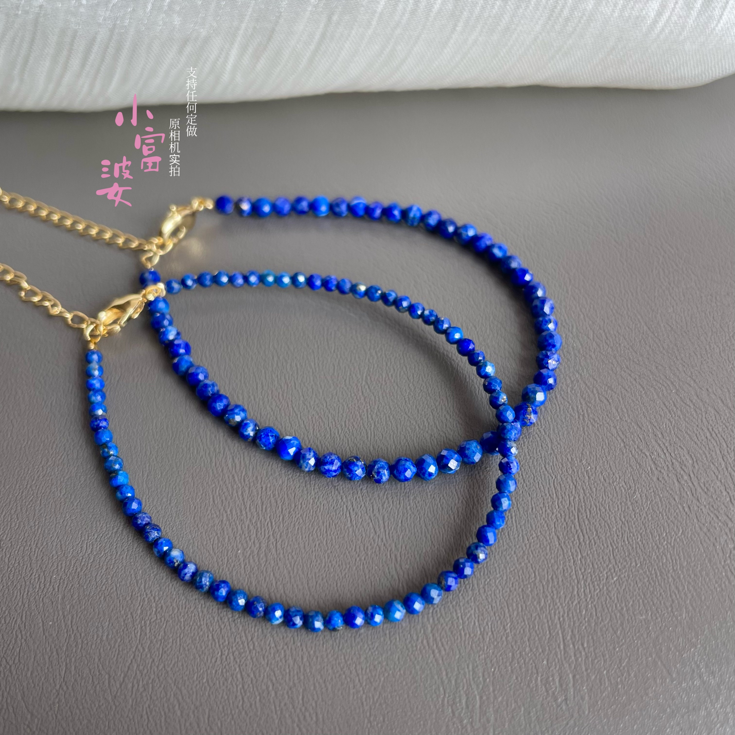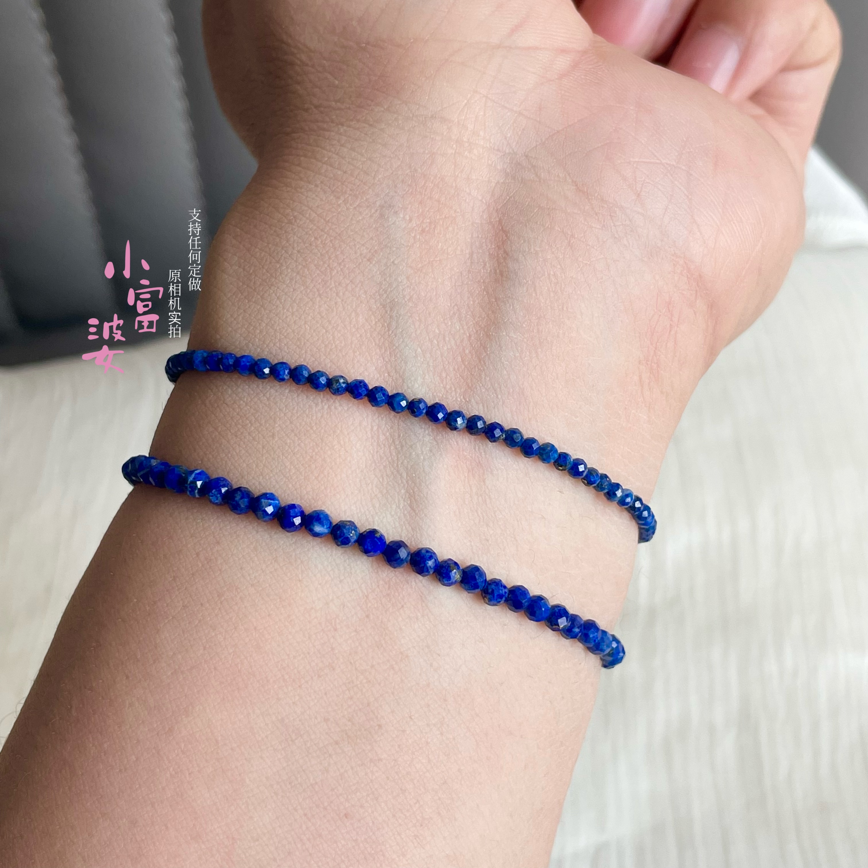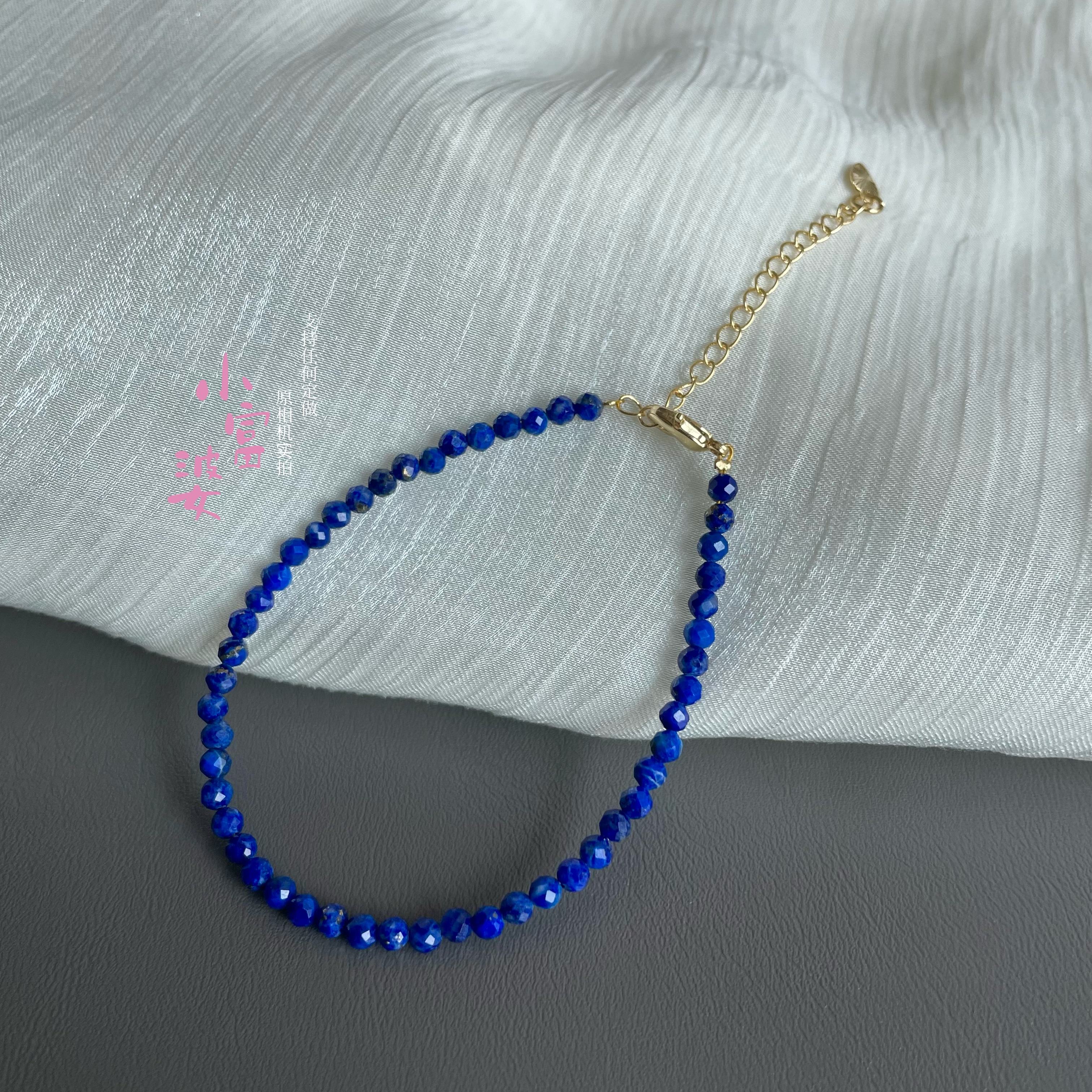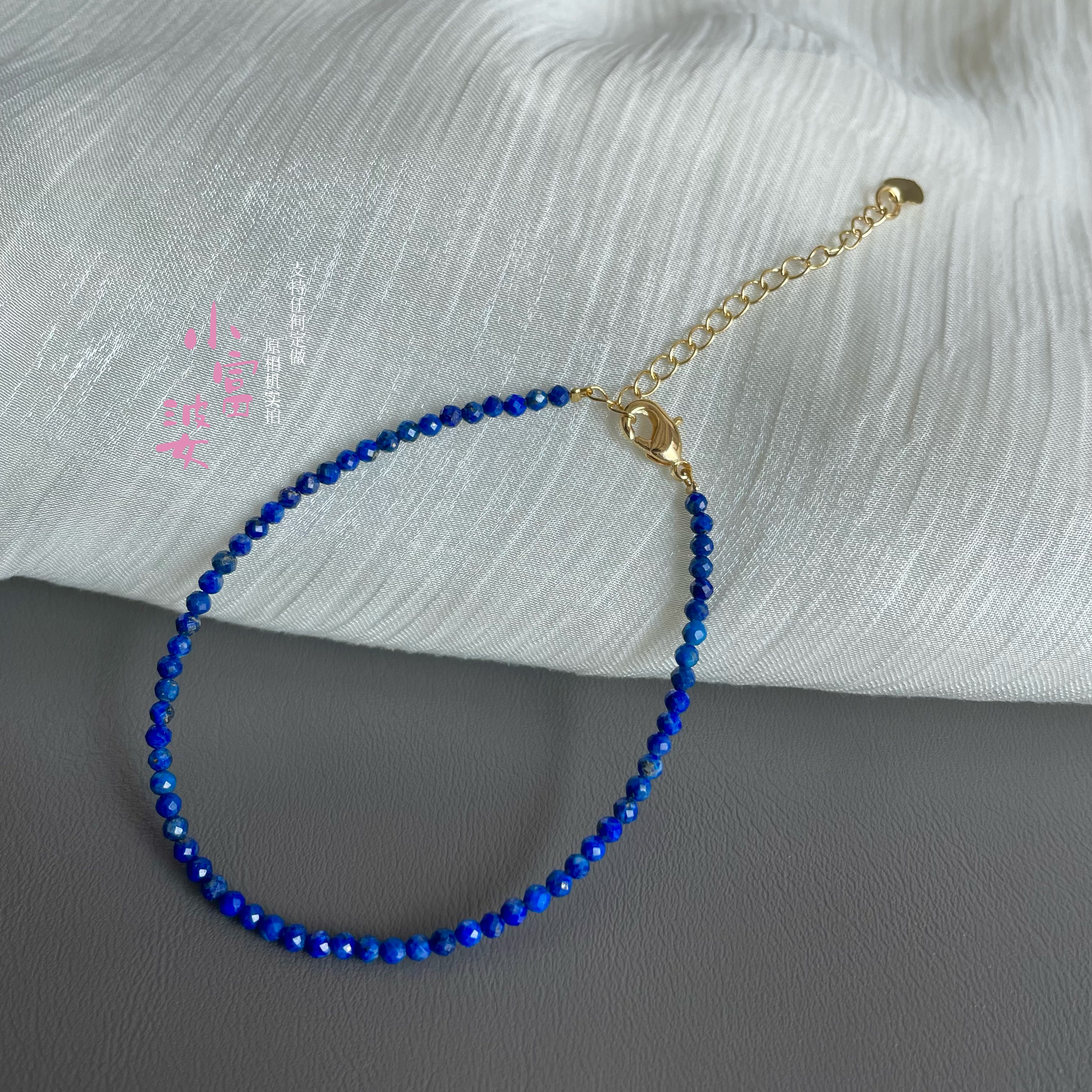 AAAA天然青金石极细2m手链蓝色刻面女款小众设计轻奢显白极细手串