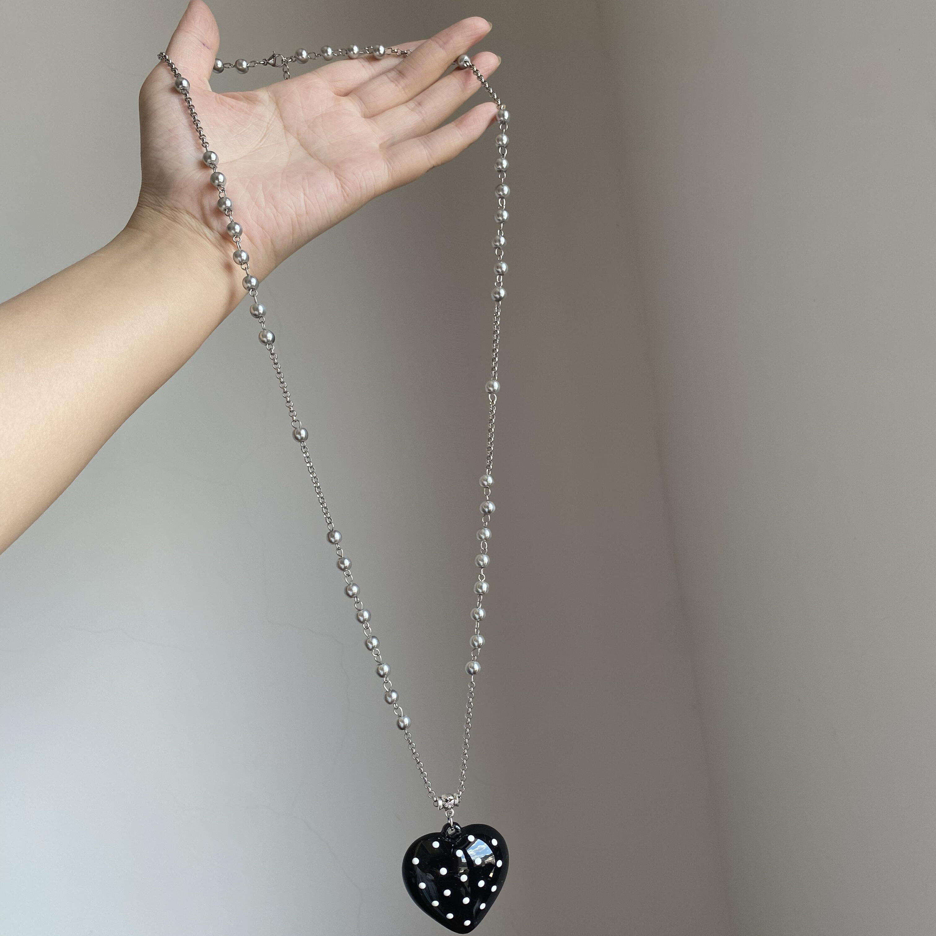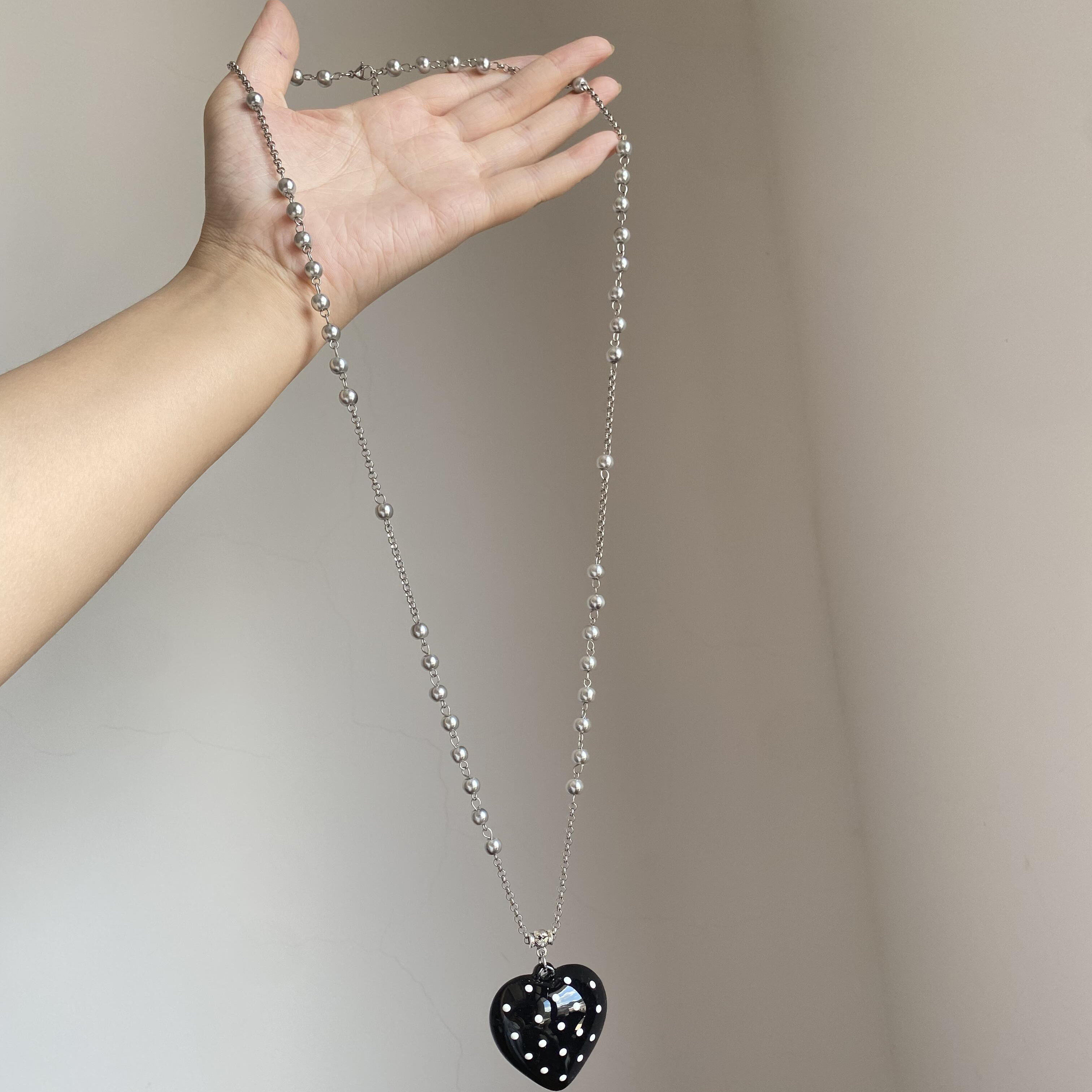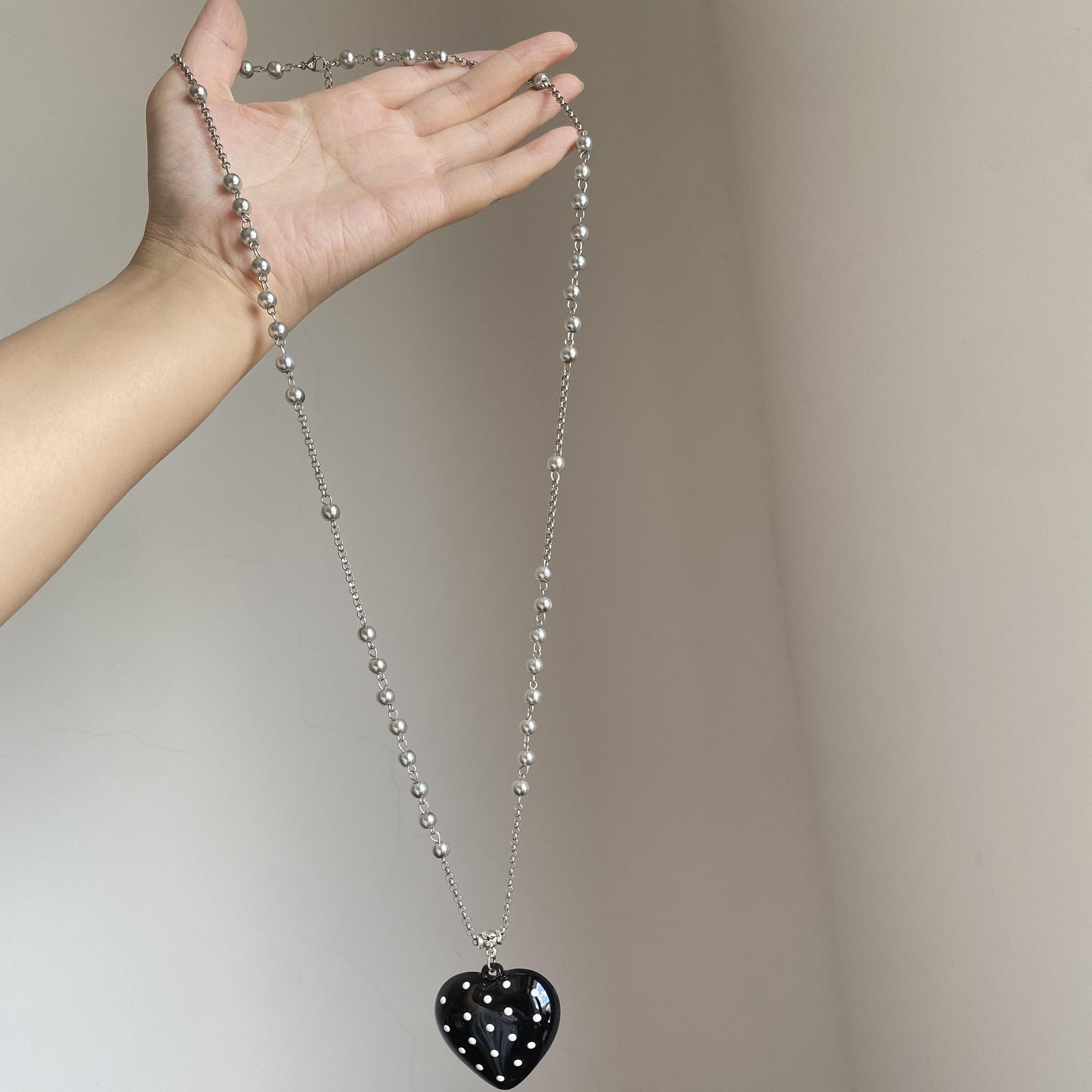 韩国白色波点爱心吊坠项链女ins风小众设计感毛衣链个性百搭配饰