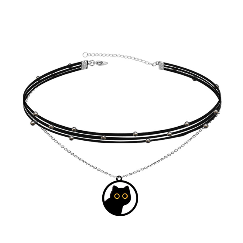 HAPPY个性小黑猫颈链项圈轻奢项链吊坠颈饰女款哥特百搭颈带饰品