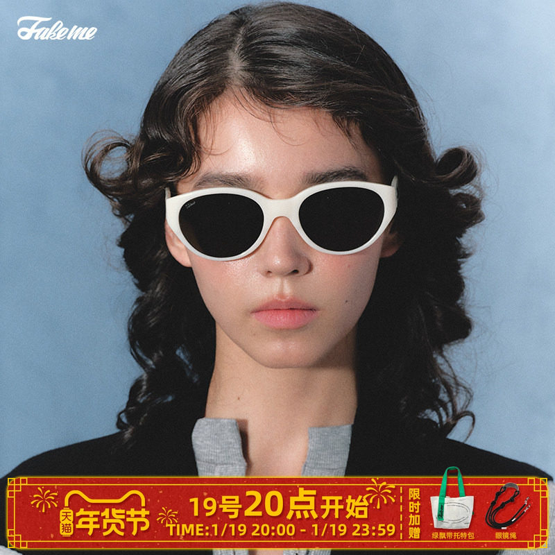 Fakeme 复古板材猫眼太阳镜防紫外线ins风金吉拉longblack