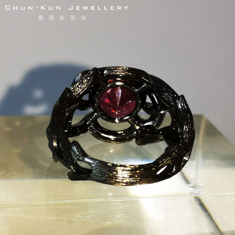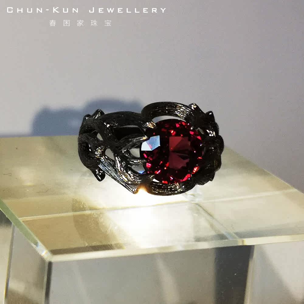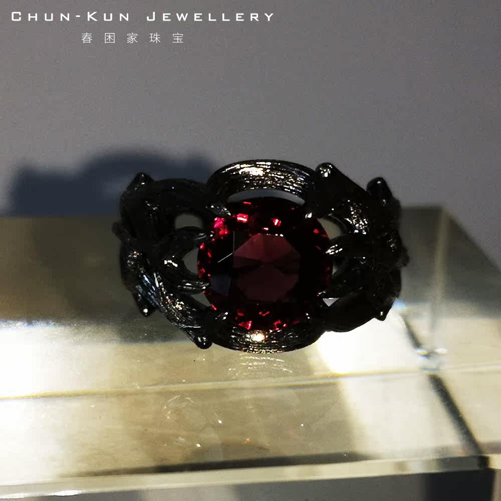 春困家珠宝纯银镀18k黑金天然石榴Shi戒藤蔓指环魔法学院男女款定