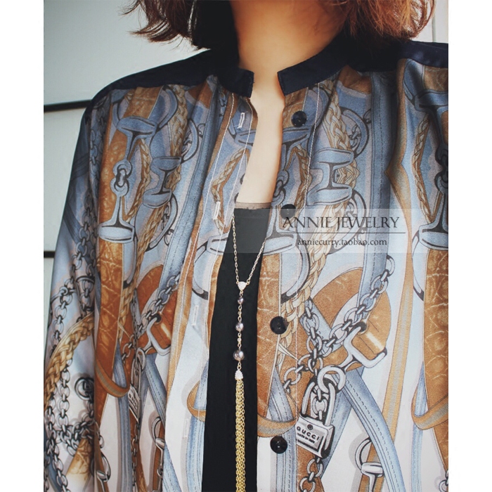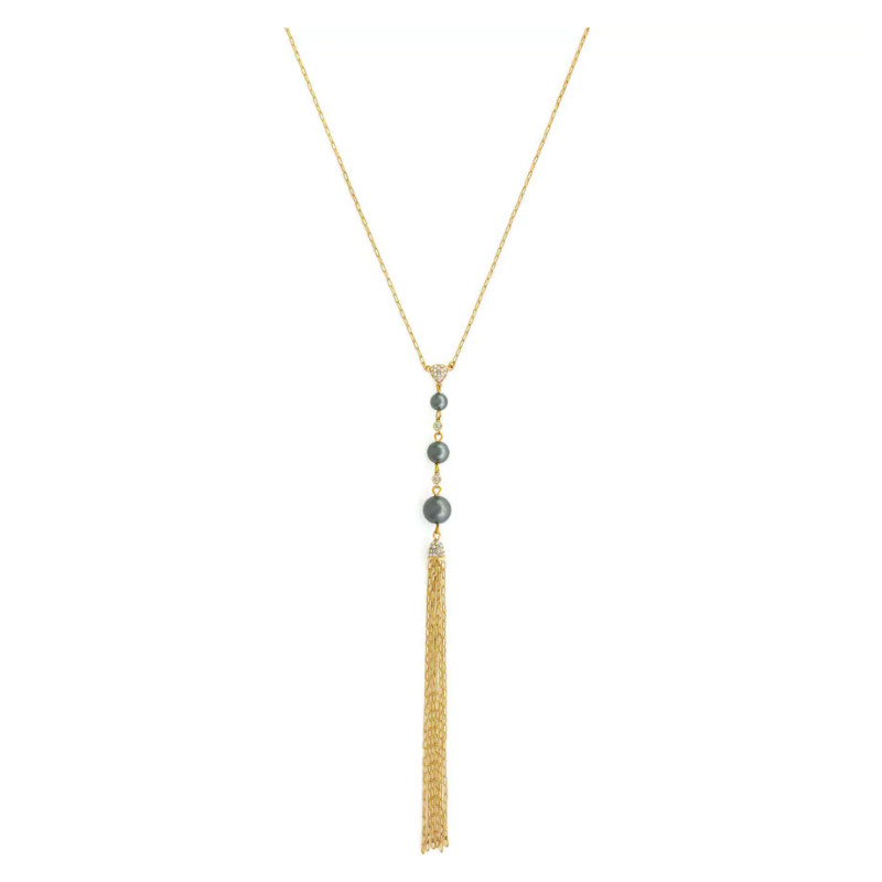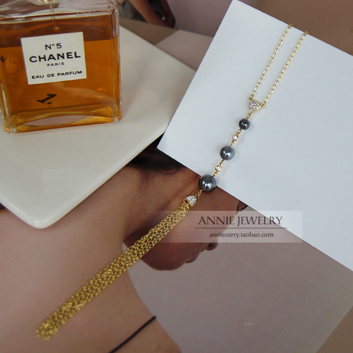Annie Jewelry 精致优雅四季款 三颗灰色珍珠Y形镶钻流苏长毛衣链