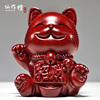 红色木质招财猫摆件开业店铺收银台家居客厅乔迁新居送礼品发财猫