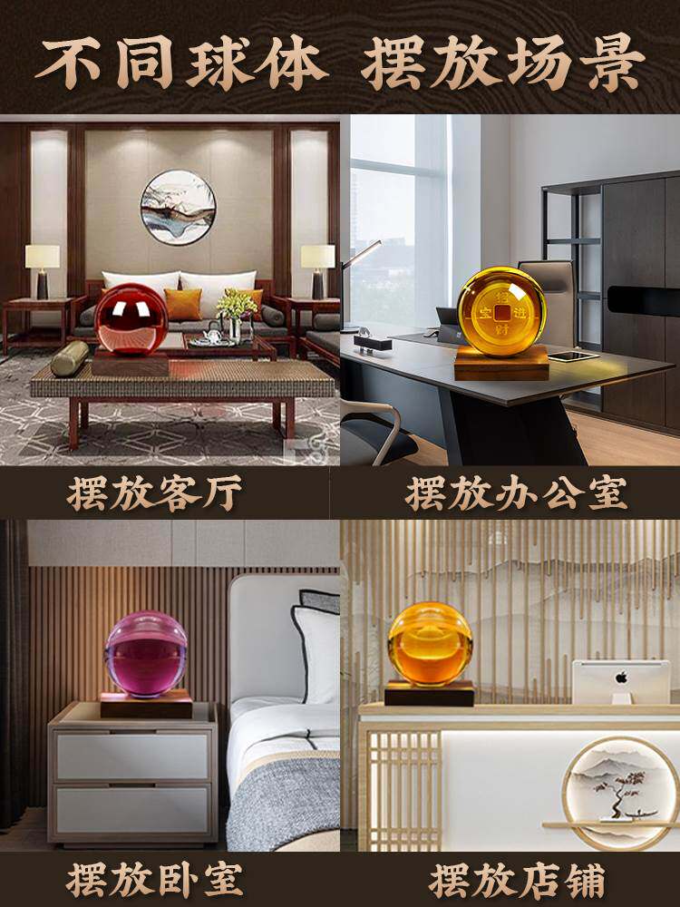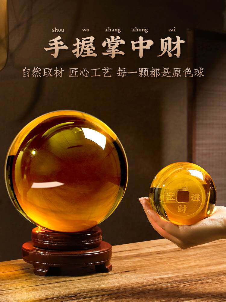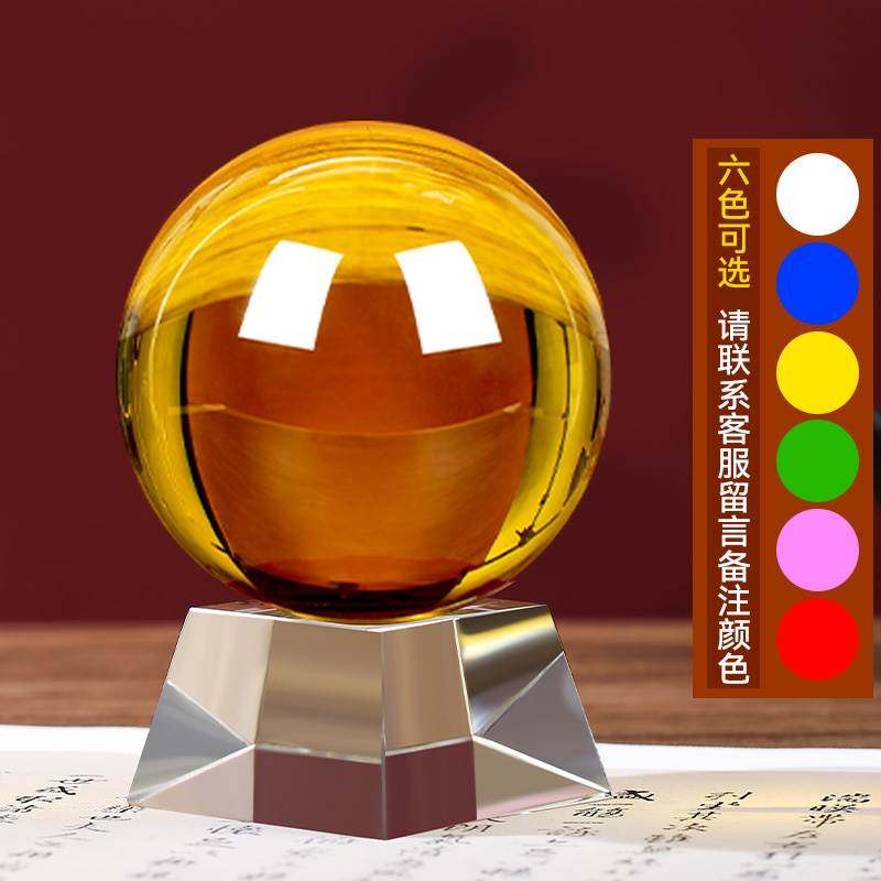 黄色水晶球摆件可旋转红紫白色透明D玻璃球K家居装饰开业玄关小摆