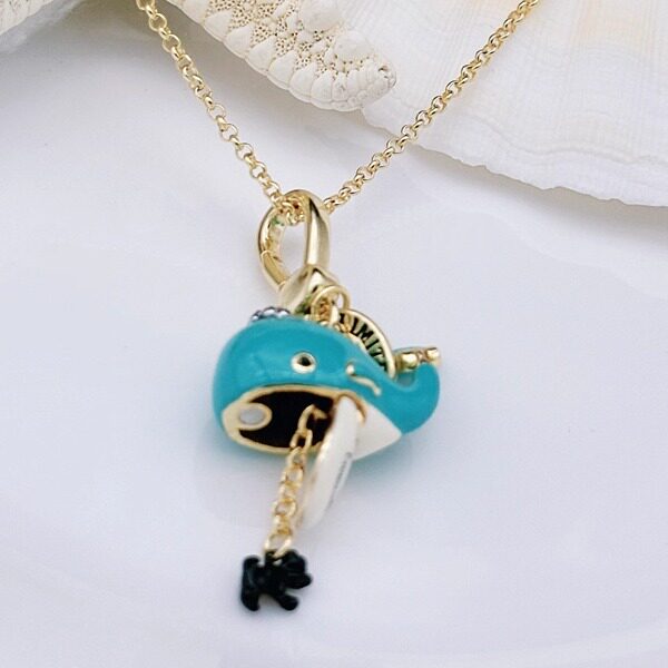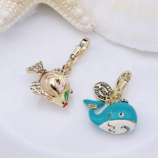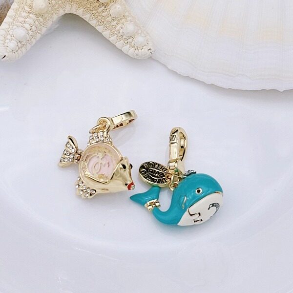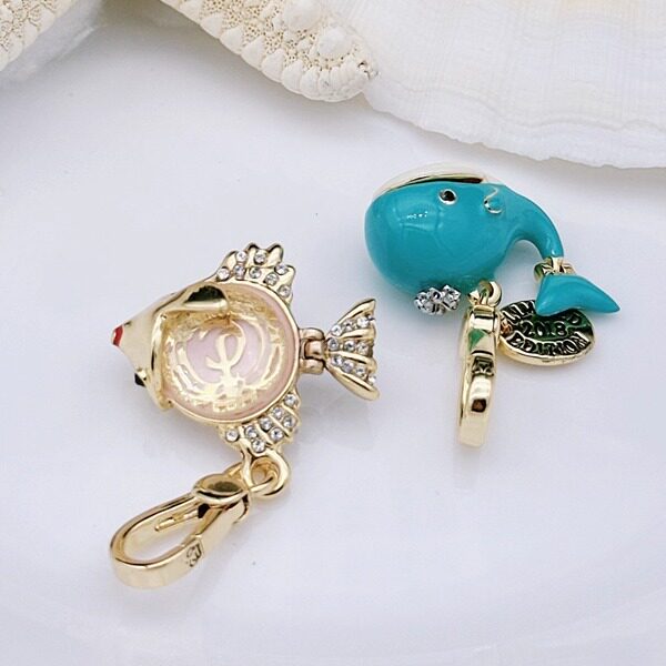 时尚可爱 蓝色鲸鱼可开嘴吐小狗 金粉鱼可摆尾 吊坠--J8023-J8156