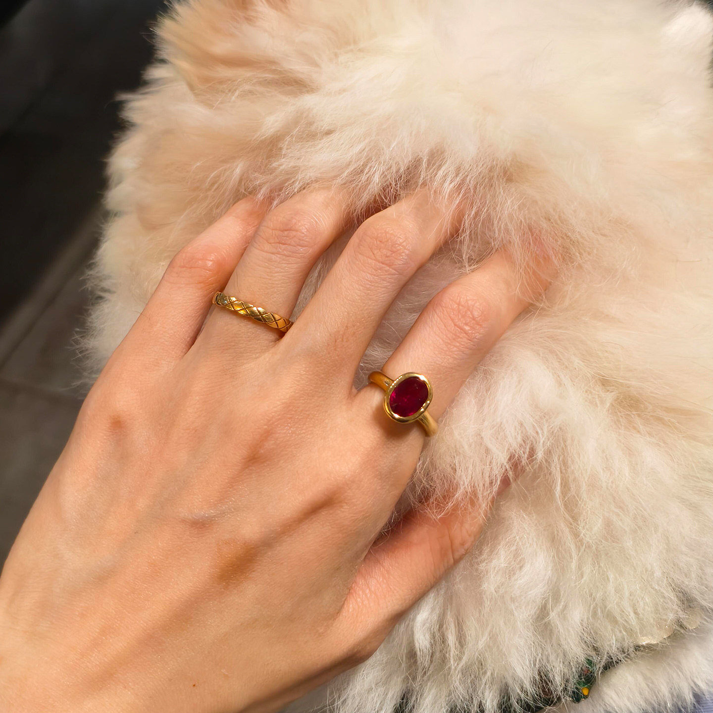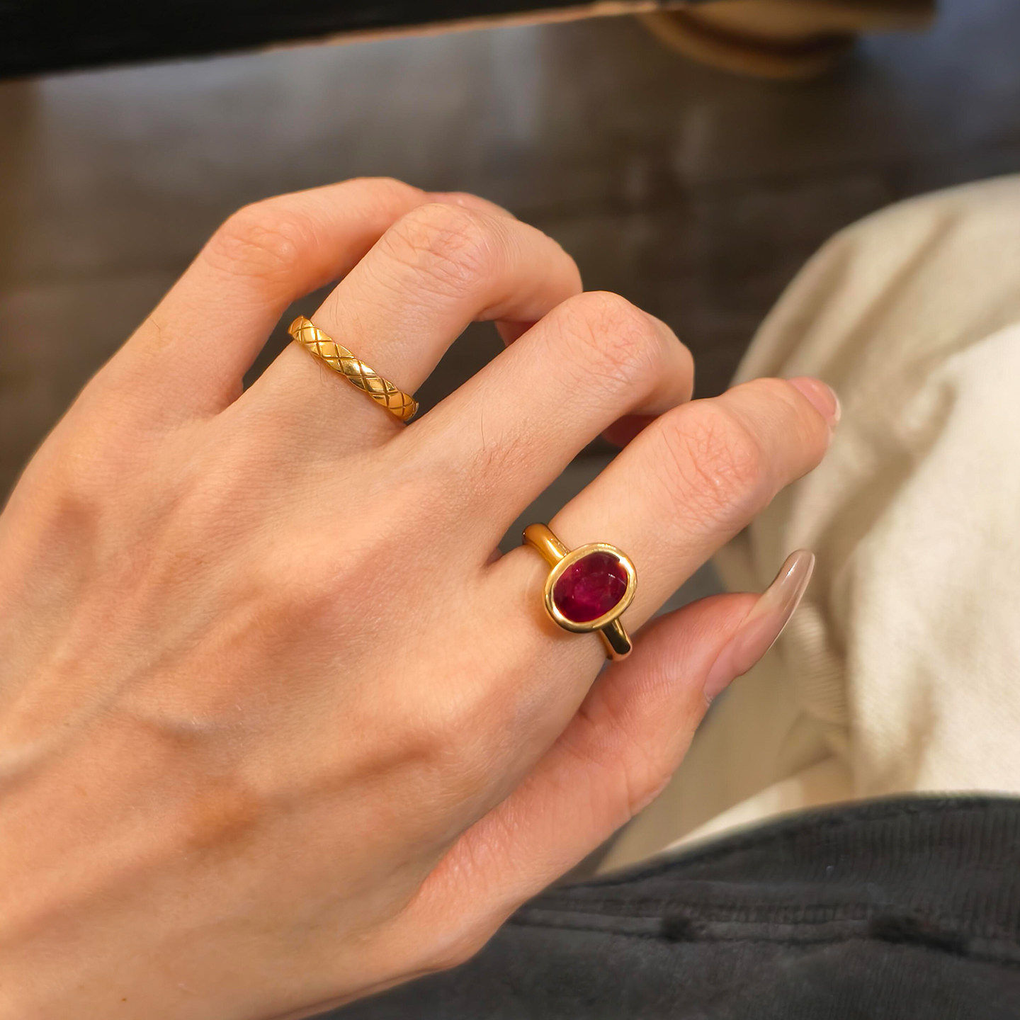 S925纯银老钱风复古红色椭圆闪钻戒指女轻奢高级感百搭叠戴食指戒