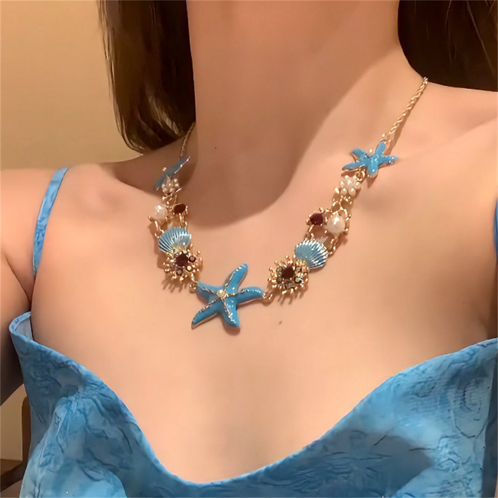 zoozmomo蓝色海星贝壳项链女海边度假风拍照颈链氛围感轻奢锁骨链