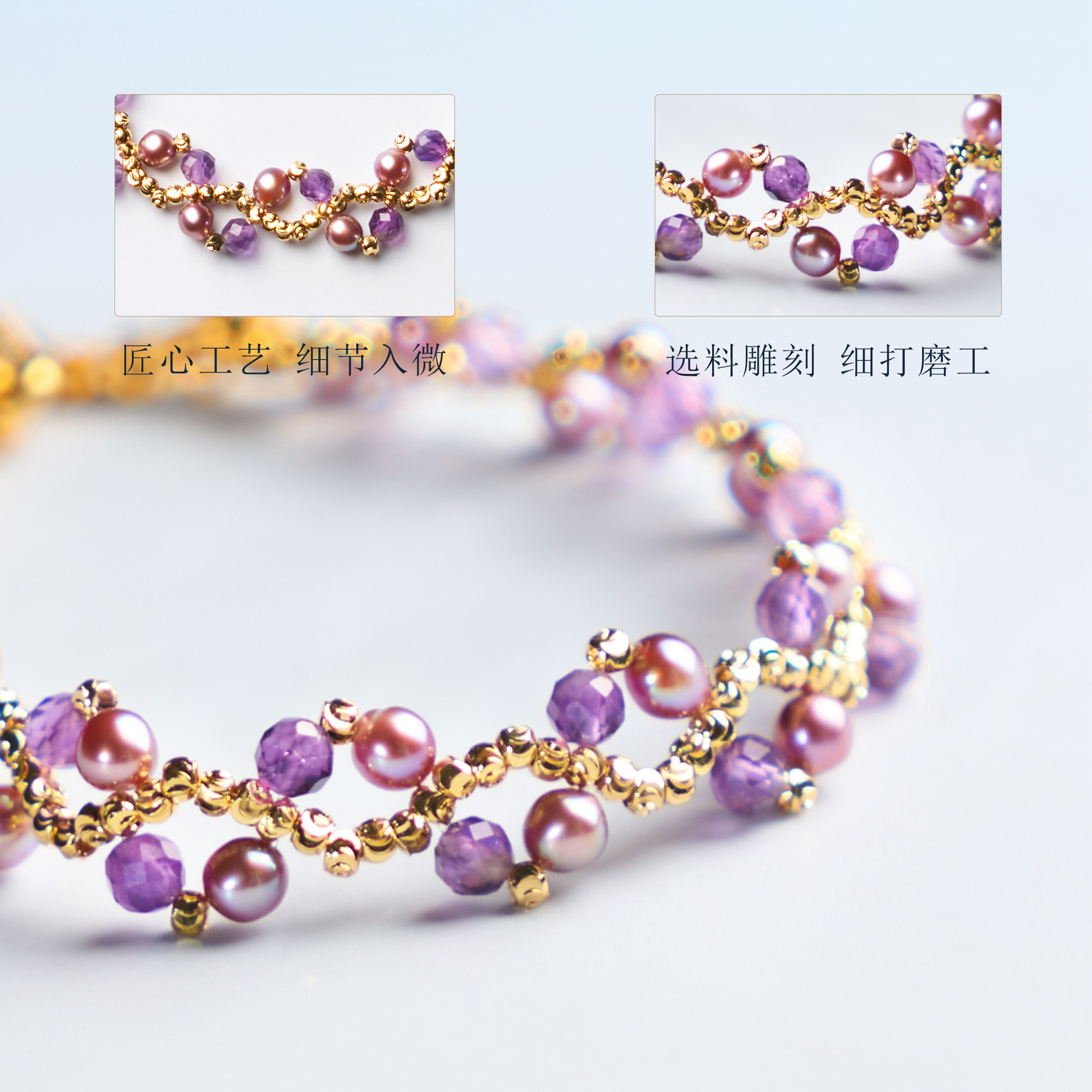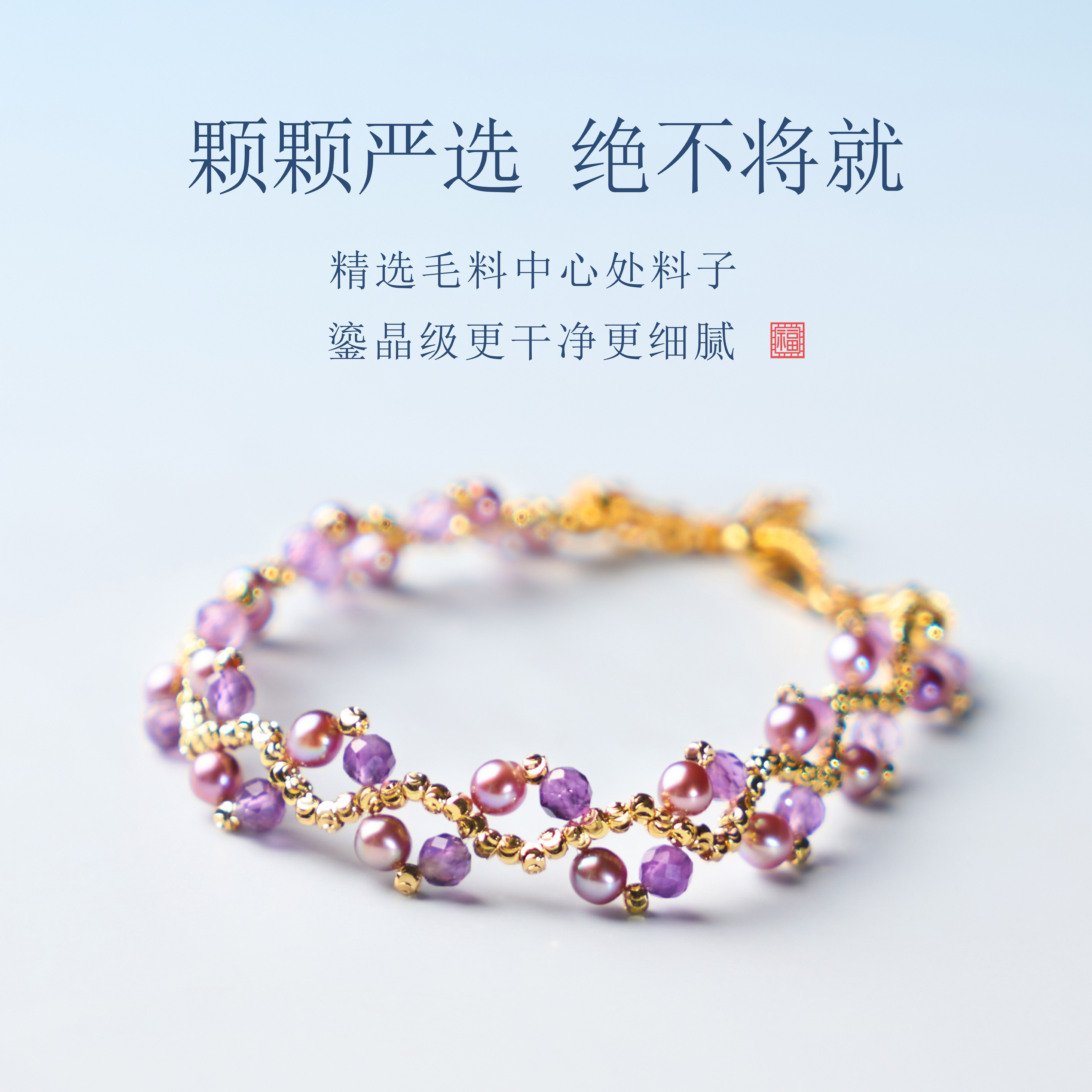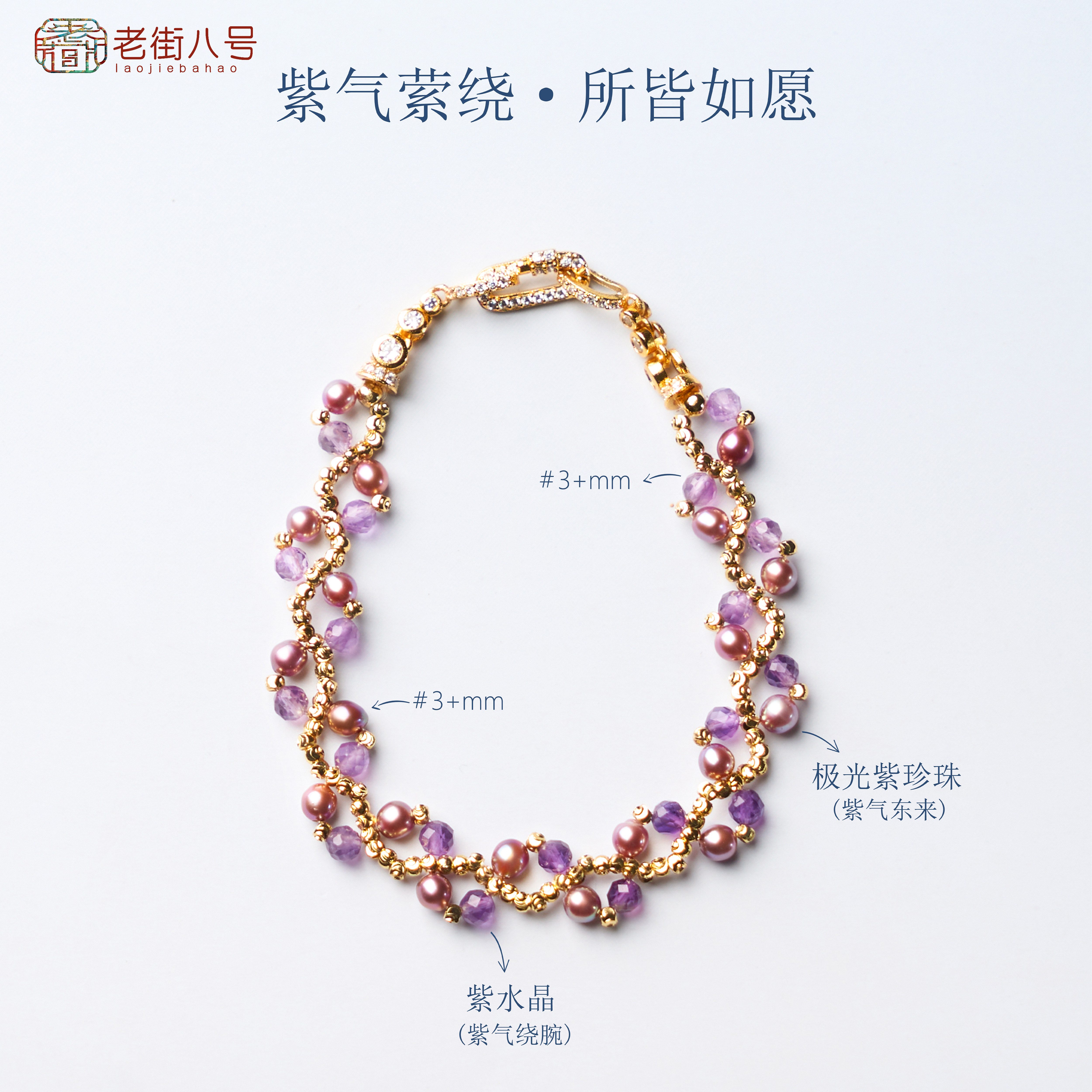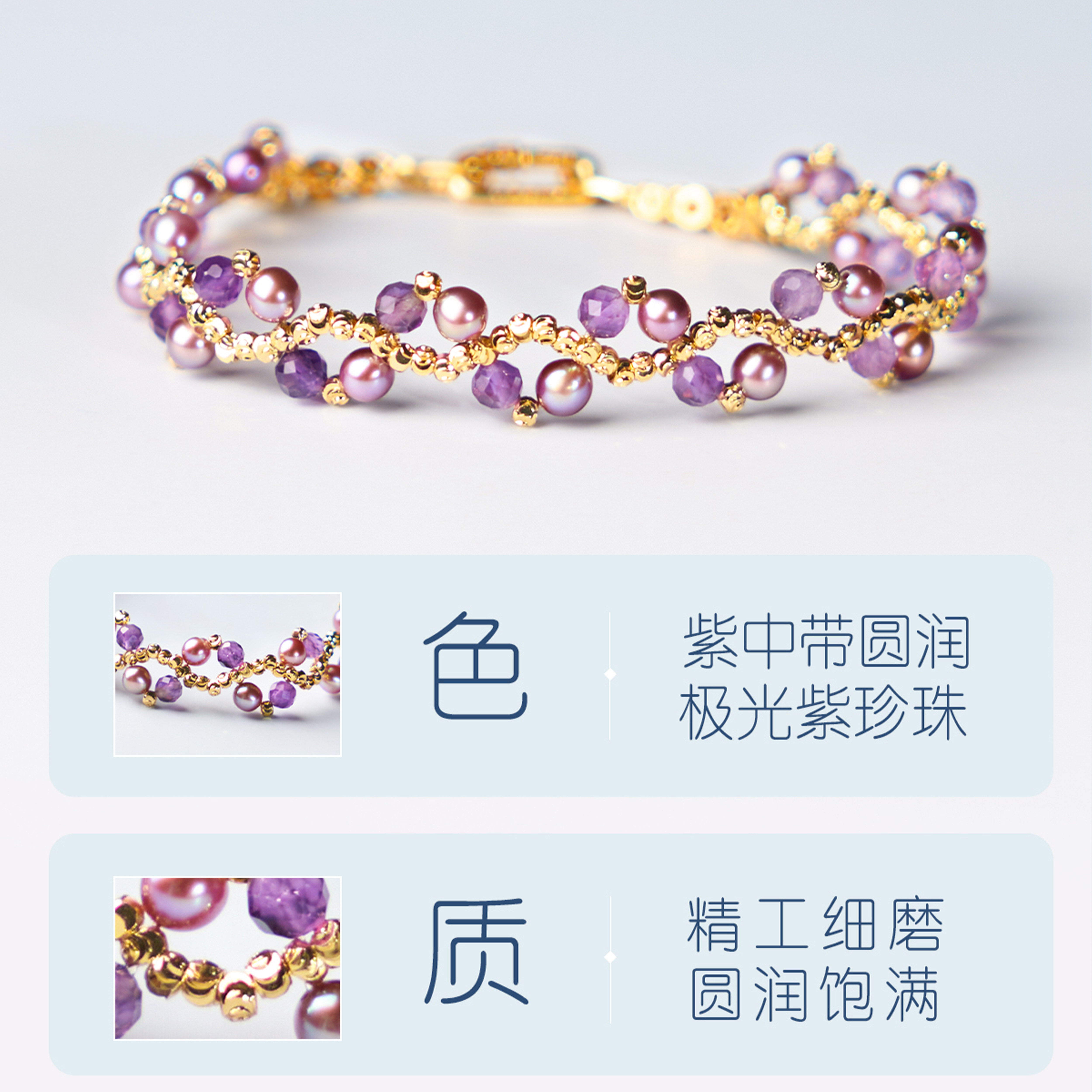 天然珍珠手链紫色极光母亲节礼物新中式饰品轻奢小众高级感