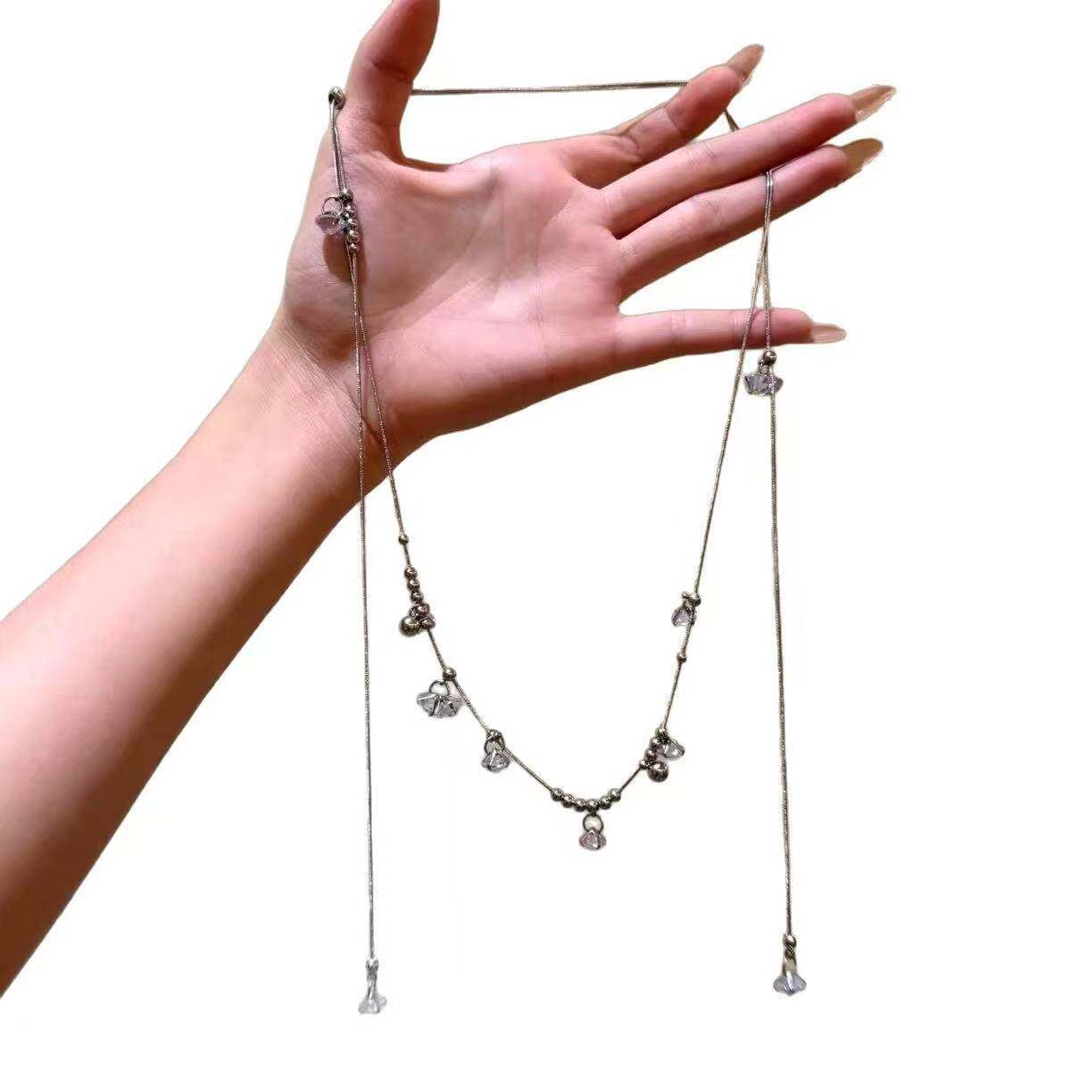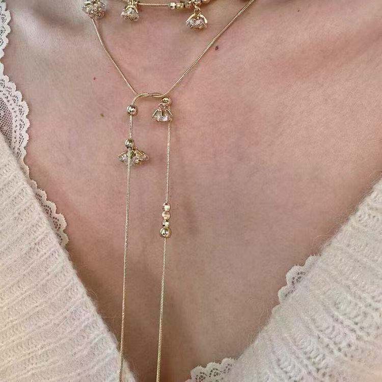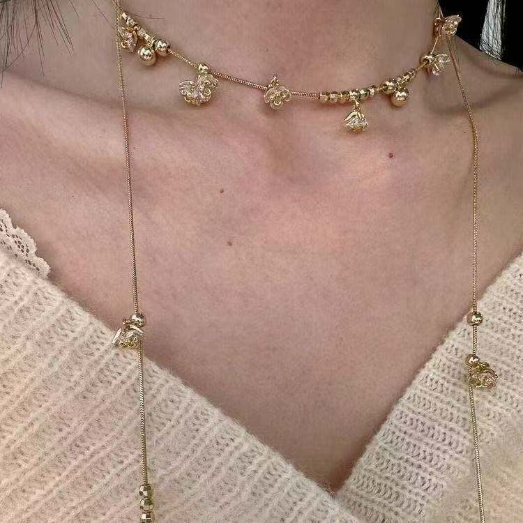 仙女温柔绽放碎冰铃兰花朵水钻项链小众长款锁骨多种颈链戴法女辣