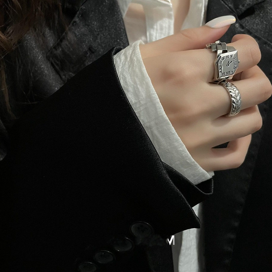 韩版个性钟表戒指女复古时尚麻花开口指环嘻哈创意食指戒潮