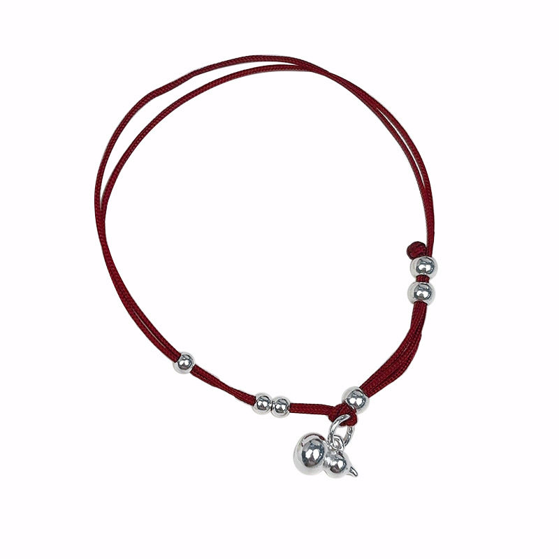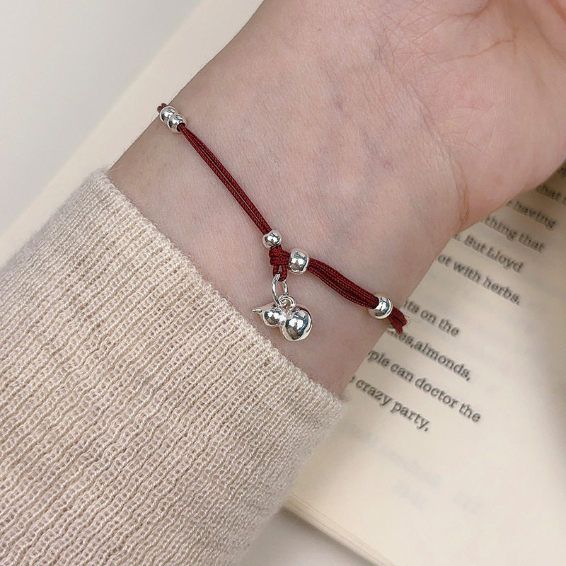 实拍s925纯银葫芦红绳手链女ins新中式本命年手工编织串珠手绳