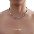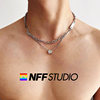NFF原创潮双层叠戴镶钻转运吊坠钛钢项链男嘻哈高级感锁骨链百搭