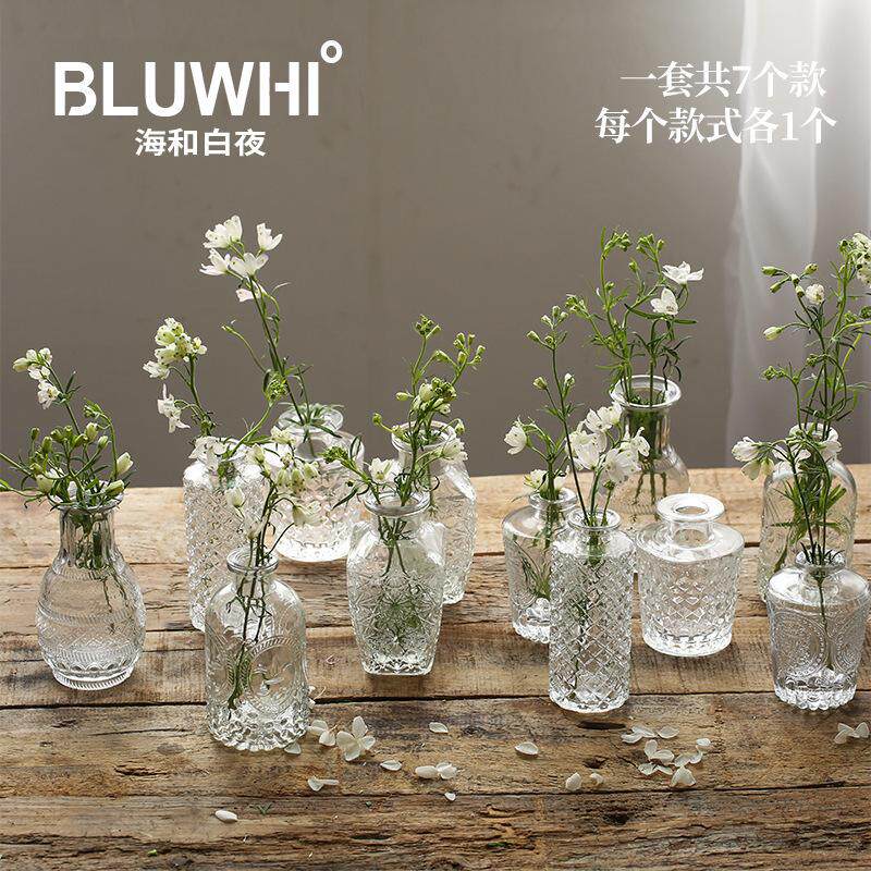 法式复古浮雕玻璃迷你小花瓶ins风透明水培插花花瓶桌面装饰摆件
