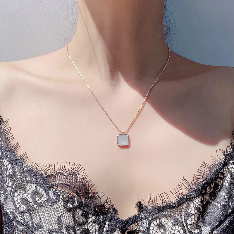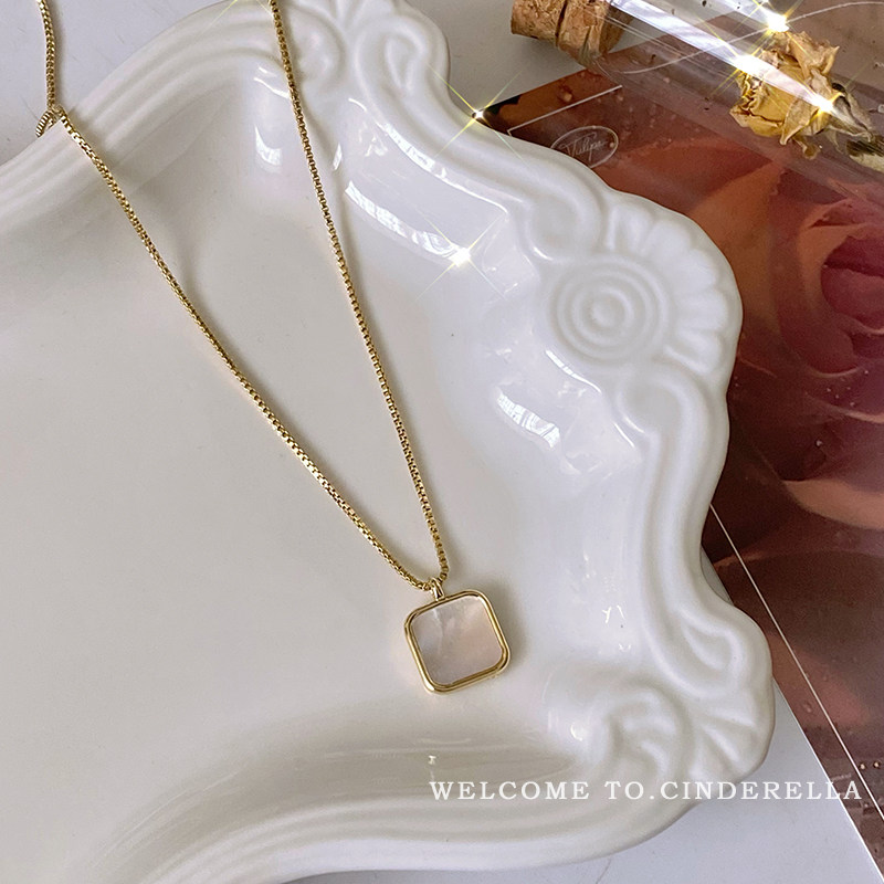 【玫瑰的故事】刘亦菲同款方形贝壳项链女小众轻奢高级感锁骨链