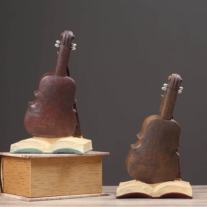 创意家居客厅电视柜书本小提琴钟表摆件办公室桌面装饰品座钟时钟