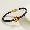 真皮金色福扣手链穿3D硬金转运珠黑色红色牛皮男女生百搭替换手绳