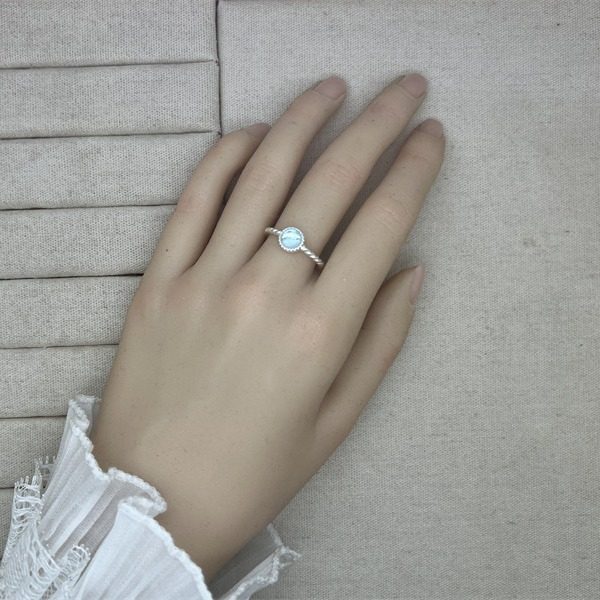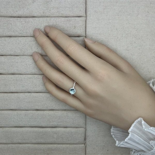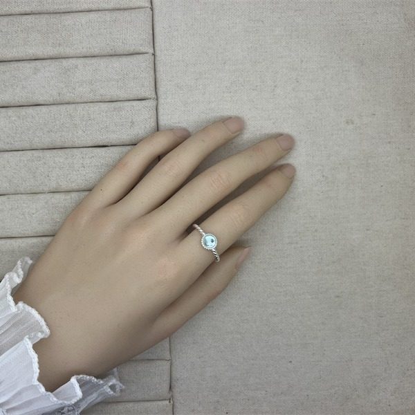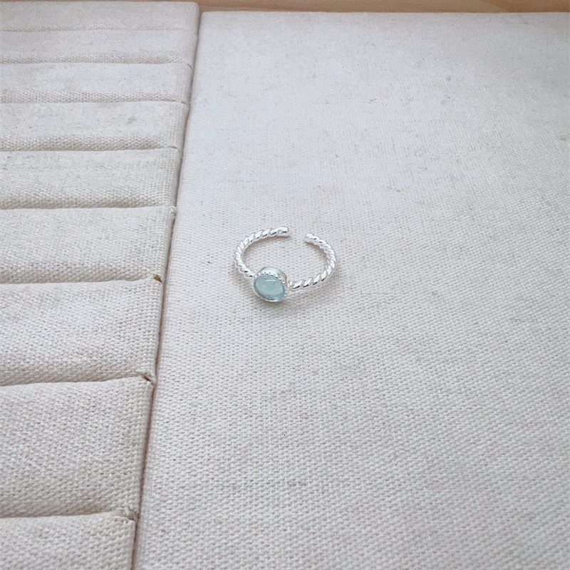 蓝色圆形锆石戒指女甜美精致优雅气质S925银开口指环ins食指戒潮