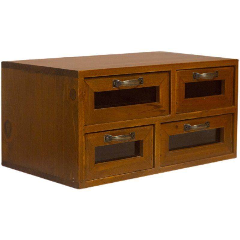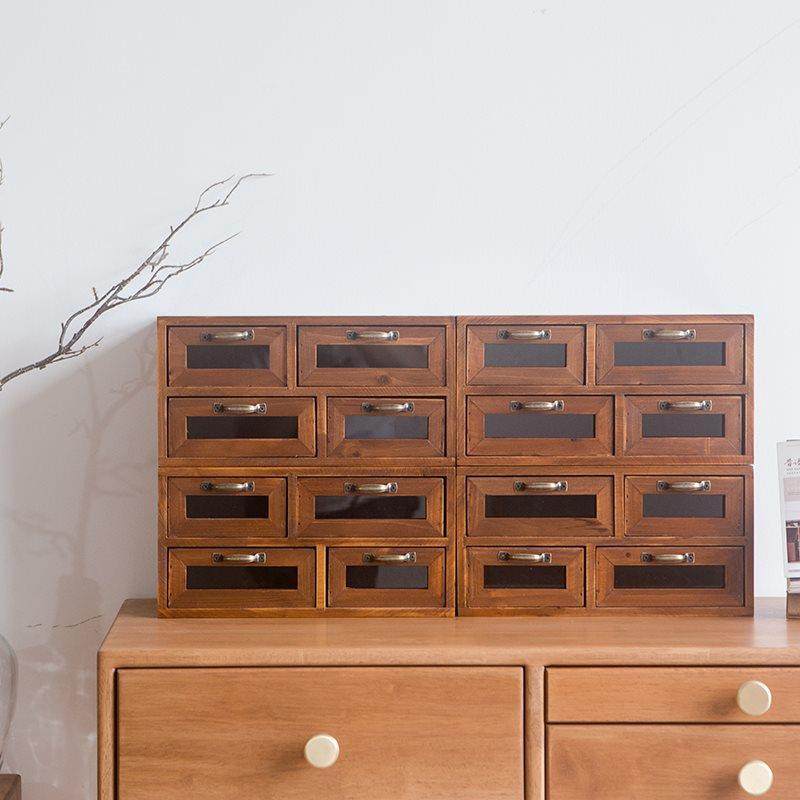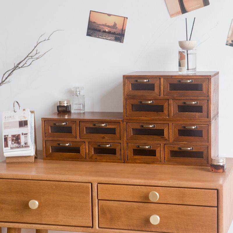 X&复古实木桌面杂物收纳盒手账胶带工具收纳抽屉柜梳妆台多层小木