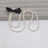 时尚黑色蝴蝶结珍珠长款项链ins网红同款甜美简约百搭洋气毛衣链