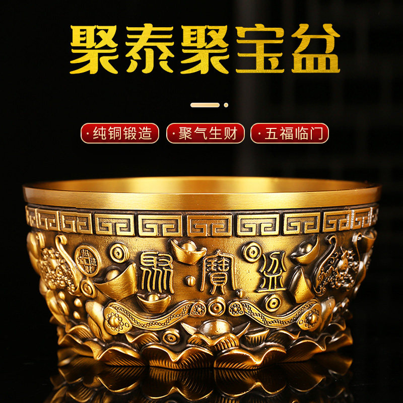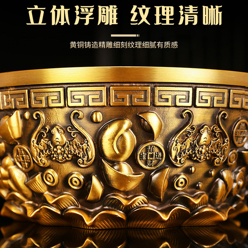 聚宝盆摆件纯铜家用客厅五福招财聚财黄铜米缸玄关装饰工艺品礼品