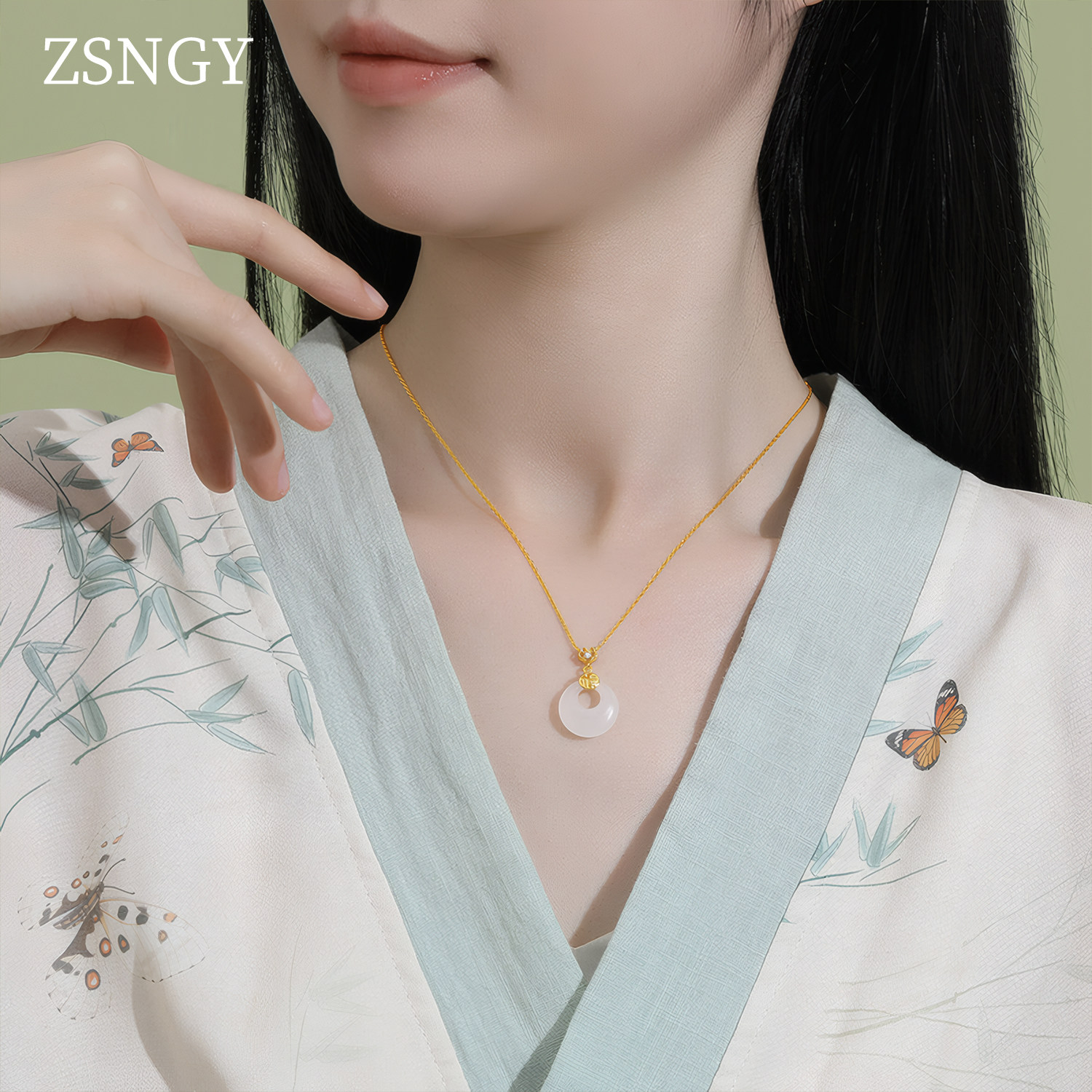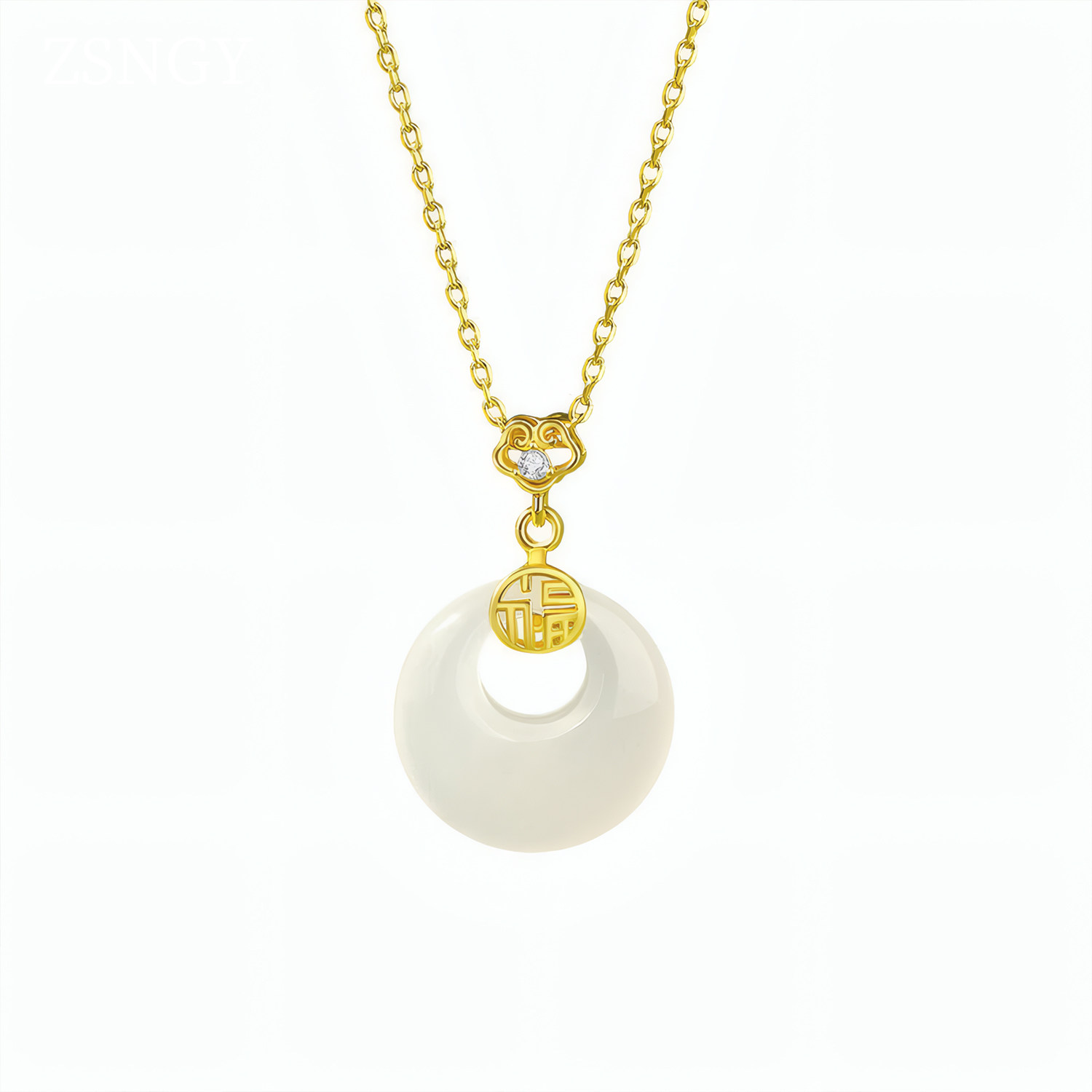纯银s999白玉髓平安扣新款项链女款母亲的生日礼物送妈妈新年礼物