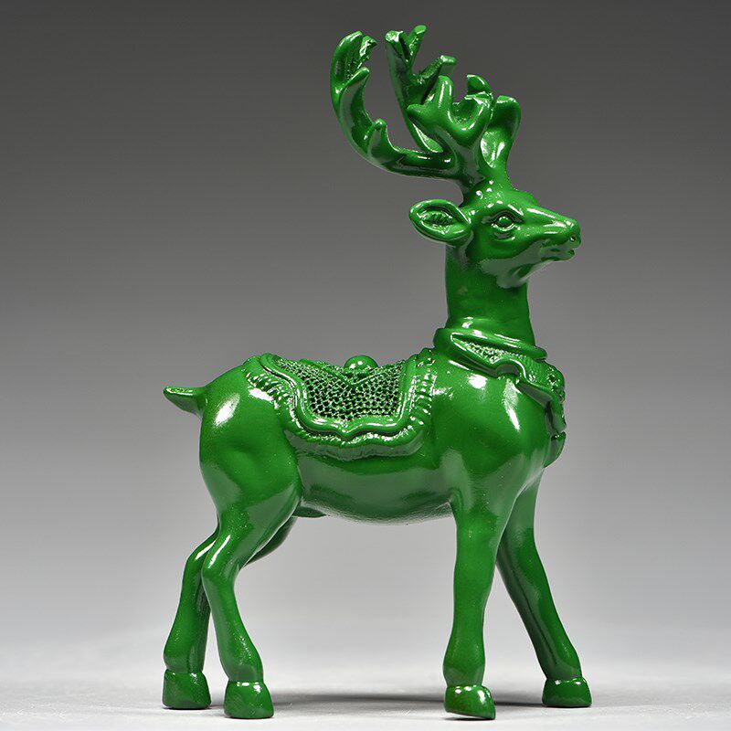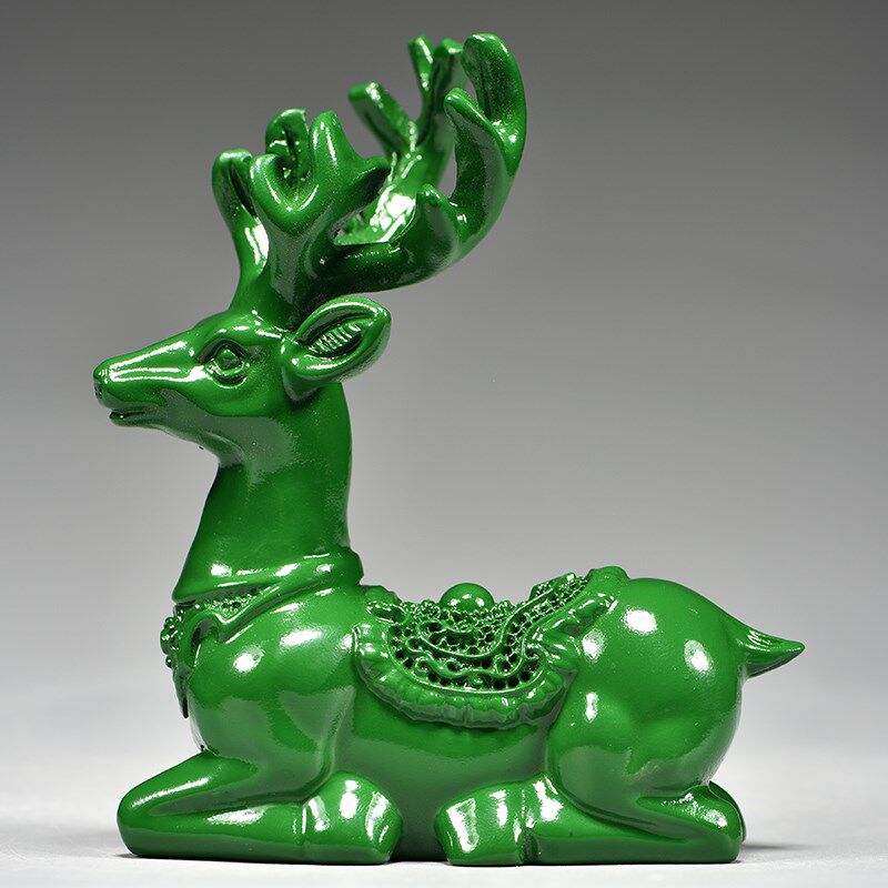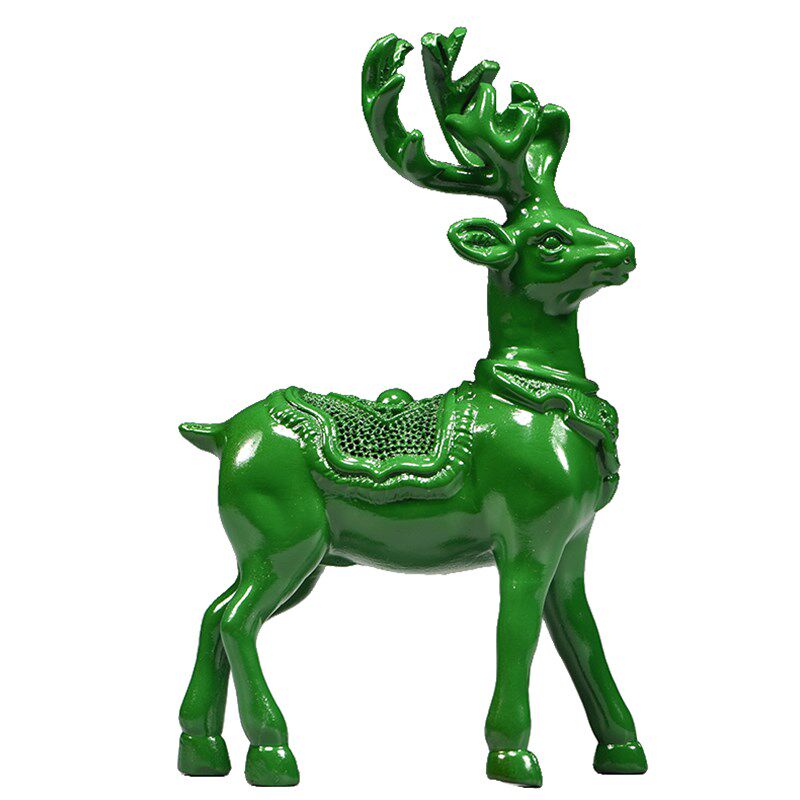 绿色木雕梅花鹿摆件家居客厅实木麋鹿一对工艺品桌面摆设酒柜装饰