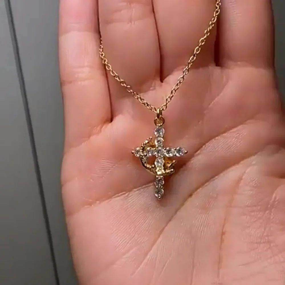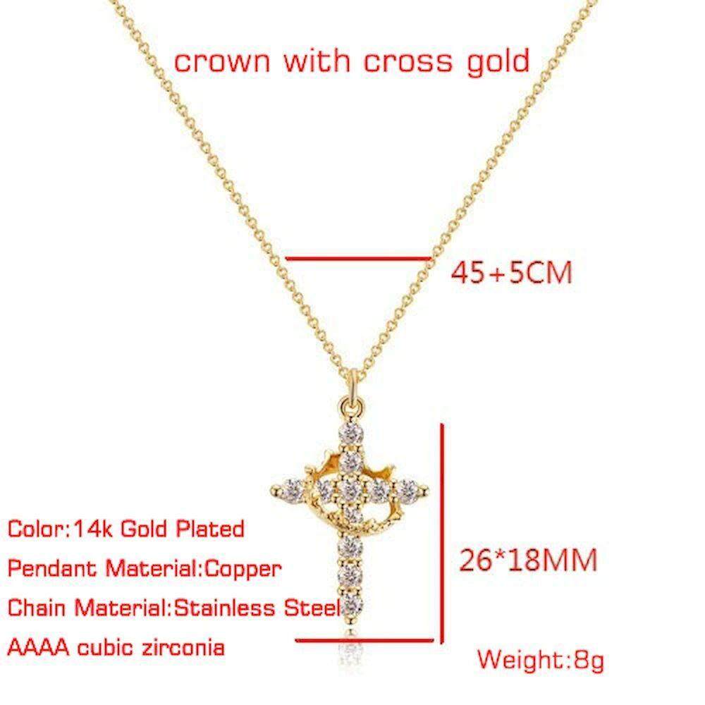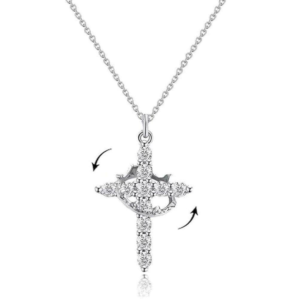 Rotatable Crown Cross Necklace AZircon Gold Silver 50cm Leng