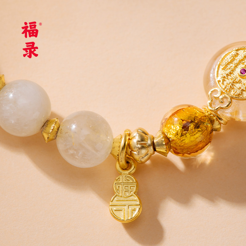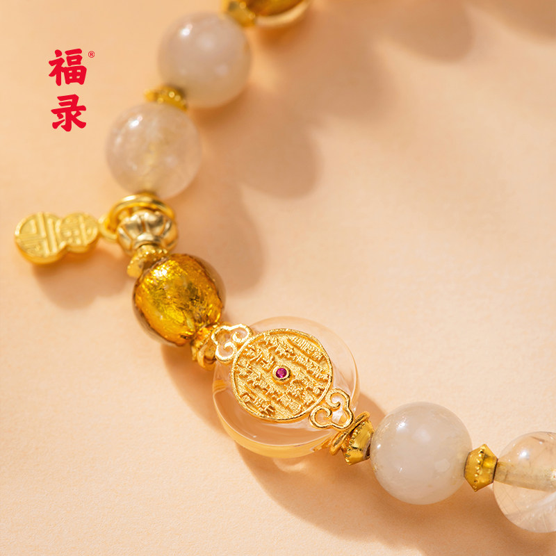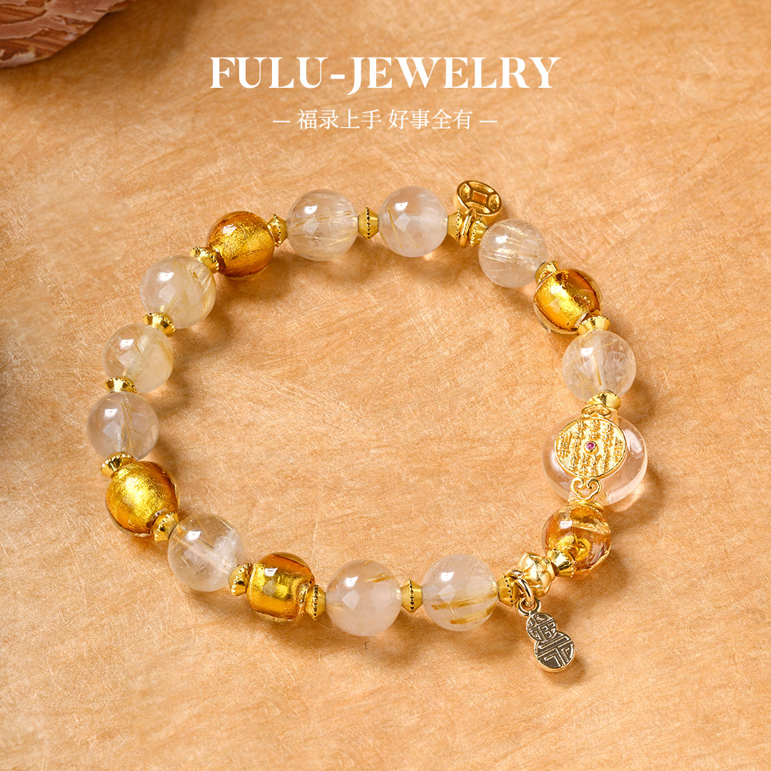 福录晶灵愈界系列金发晶银箔琉璃925银镶度母晶辉旺财手串15-17