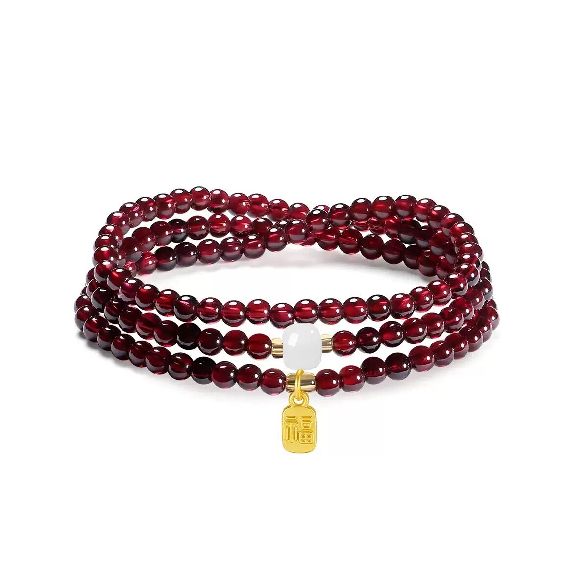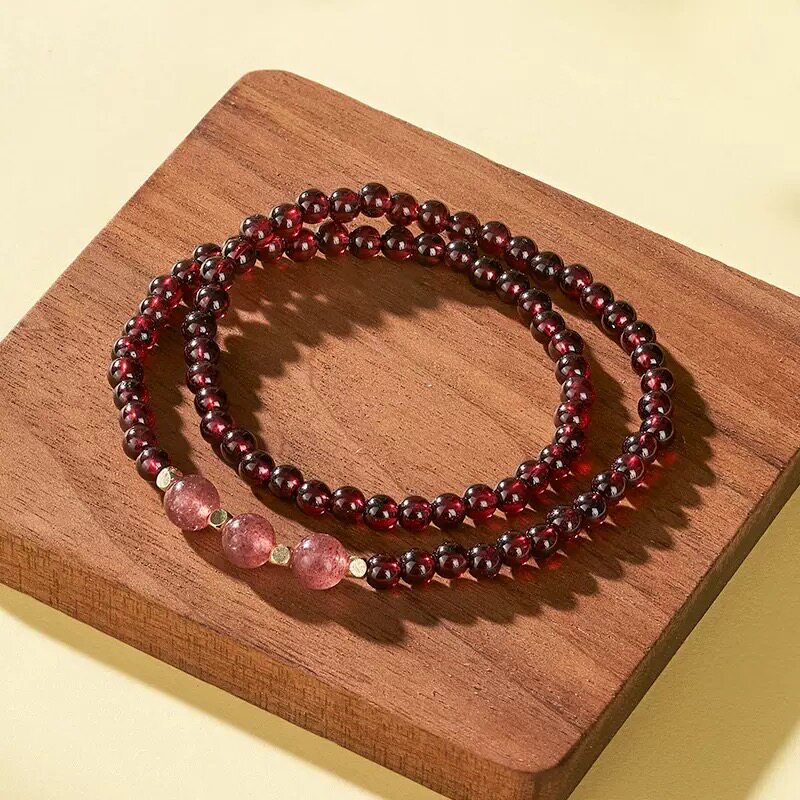灵隐天然石榴石手串吉祥红珠手链福牌红色生日礼物送闺蜜送朋友