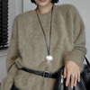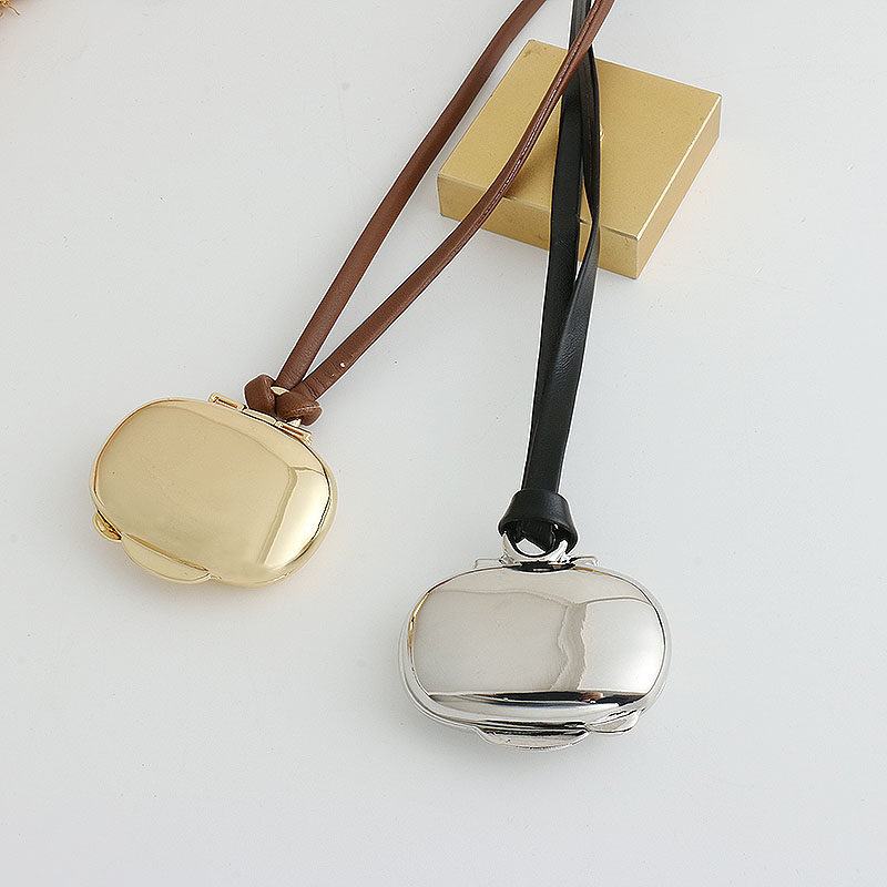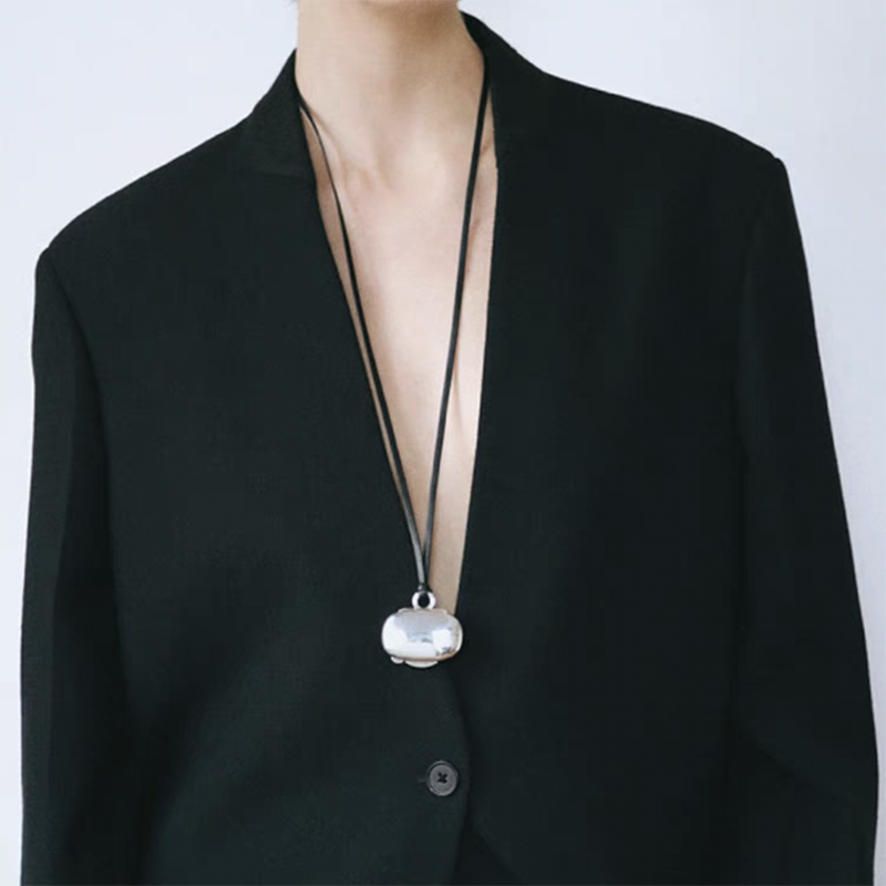紫霞的月光宝盒 时髦黑皮绳银色盒子吊坠项链女秋冬长款毛衣链潮